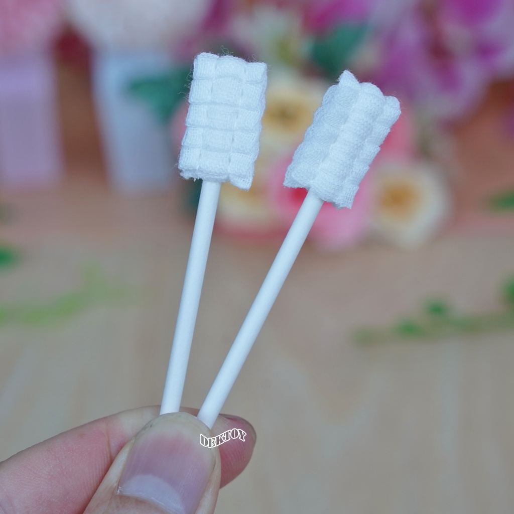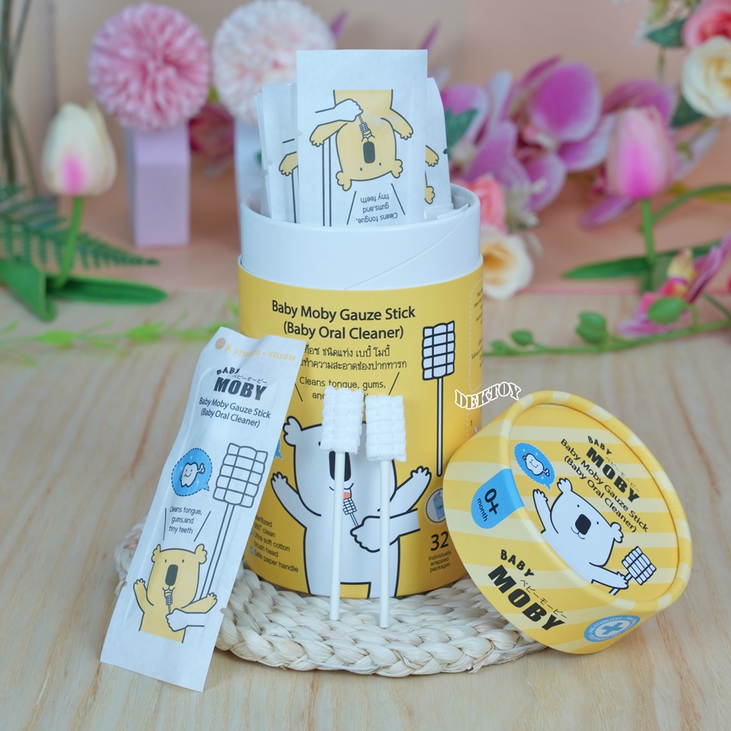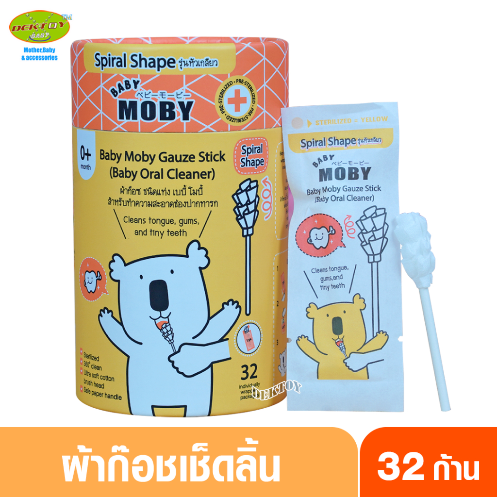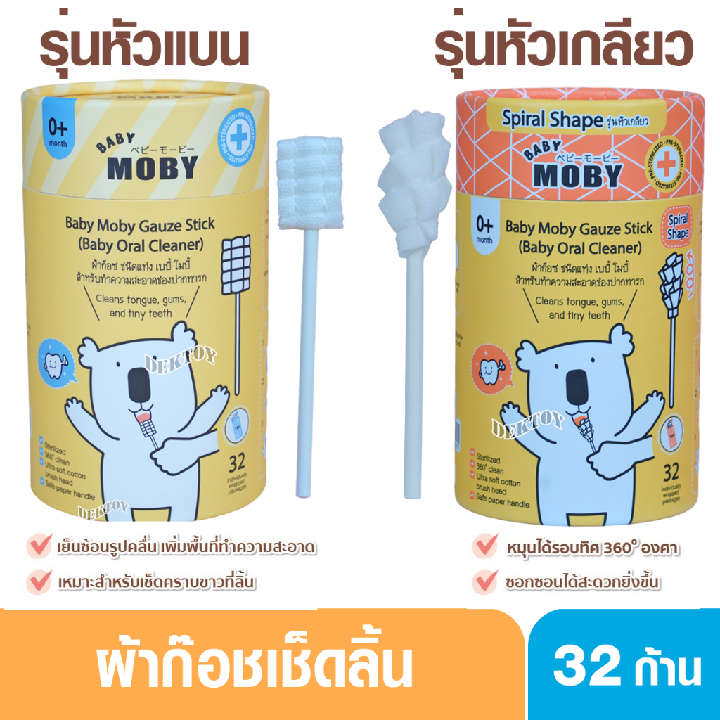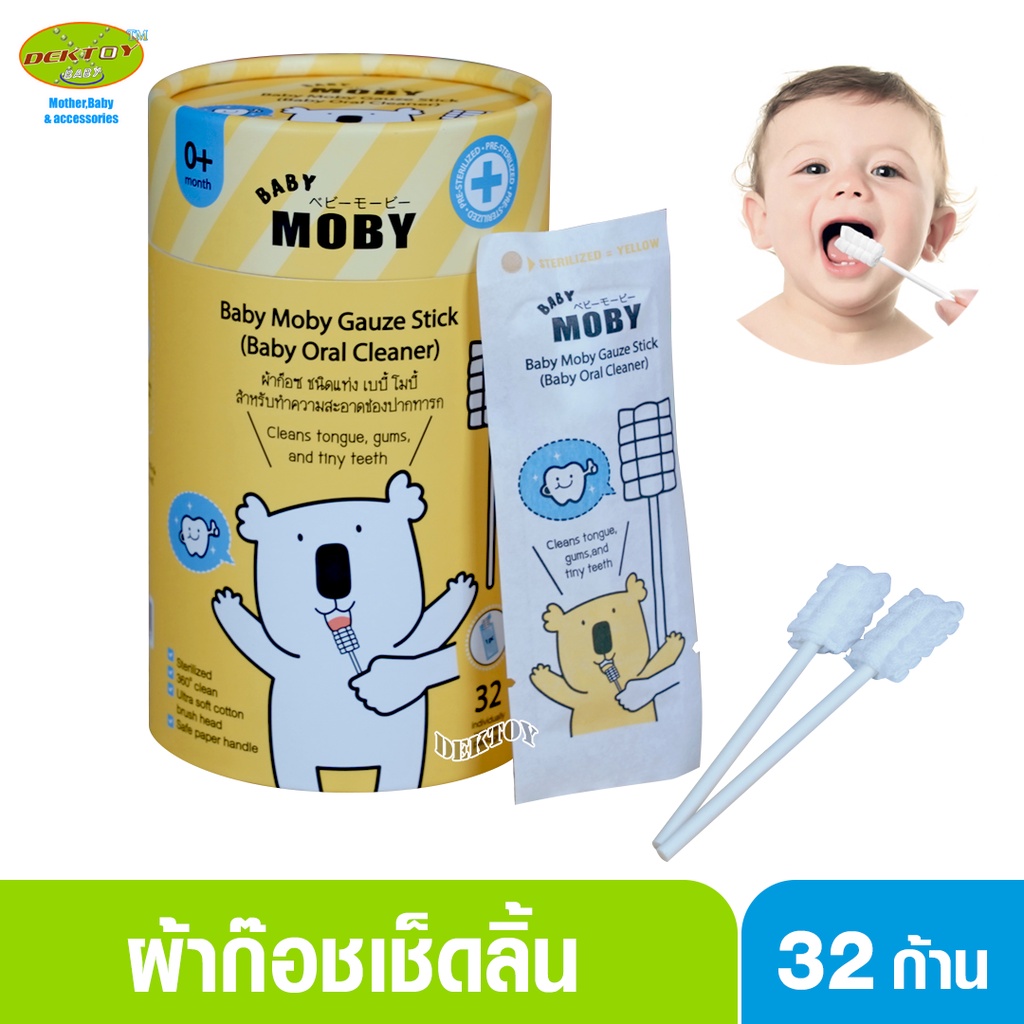 Baby moby โมบี้ ผ้าก๊อซเช็ดลิ้นทารก ผ้าก๊อซสเตอไรส์ ชนิดแท่ง หัวแบน และหัวเกลียว