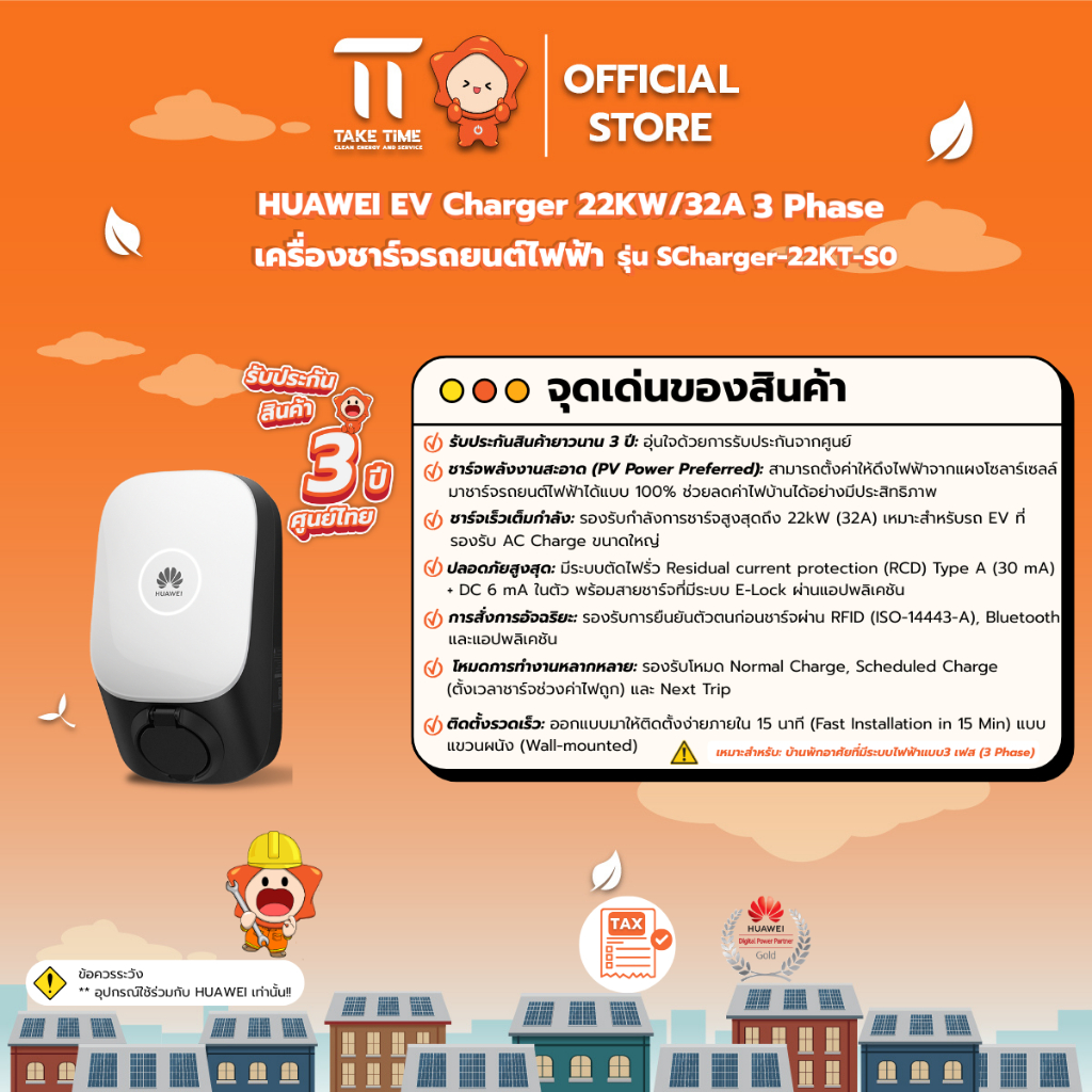 Huawei เครื่องชาร์จรถยนต์ไฟฟ้า EV Smart Charger รุ่น SCharger-22KT-S0 (22kW /3-Phase) ประกันศูนย์3ปี