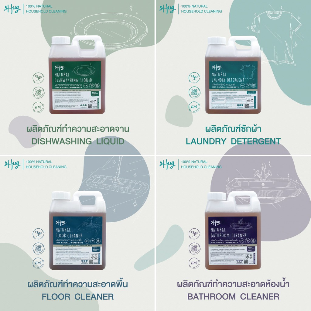 Hug ผลิตภัณฑ์ทำความสะอาดห้องน้ำ น้ำยาล้างห้องน้ำ สูตรอ่อนโยน ธรรมชาติ 100% [100% Natural Bathroom Cleaner] แกลลอน 1 ลิตร