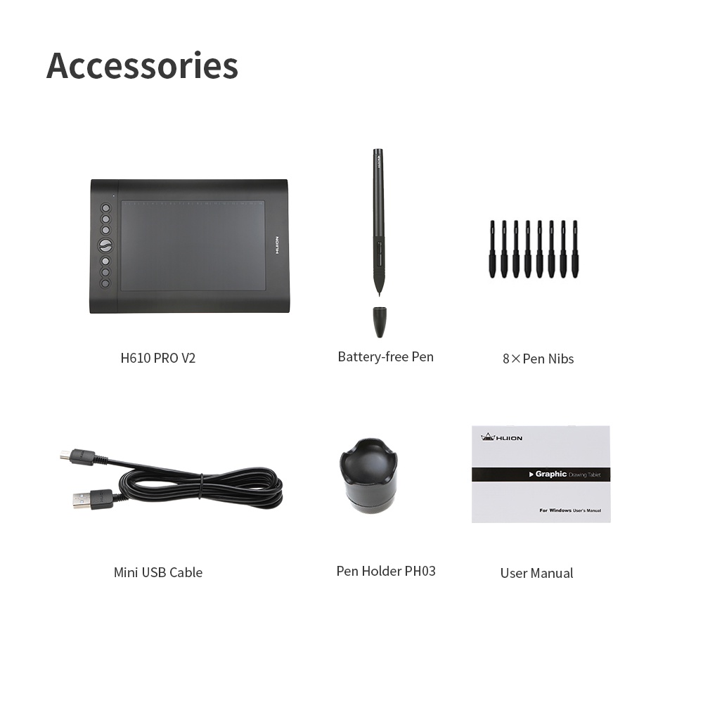 Huion USB Graphics Drawing Tablet Upgraded H610 PRO V2 Pad Art Digital Handwriting Drawing Board with Battery-free Pen