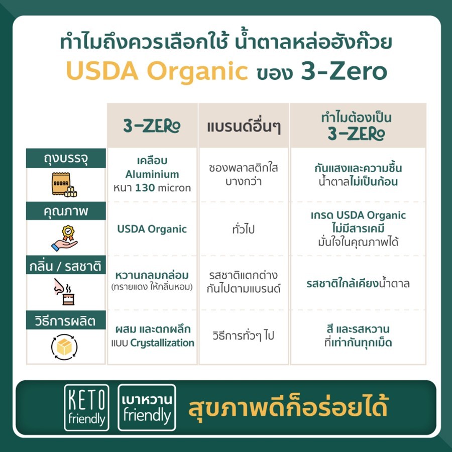 3Zero น้ำตาลหล่อฮังก๊วยออร์แกนิค Monk Fruit Sweetener USDA Organic (225 g / Sachet)