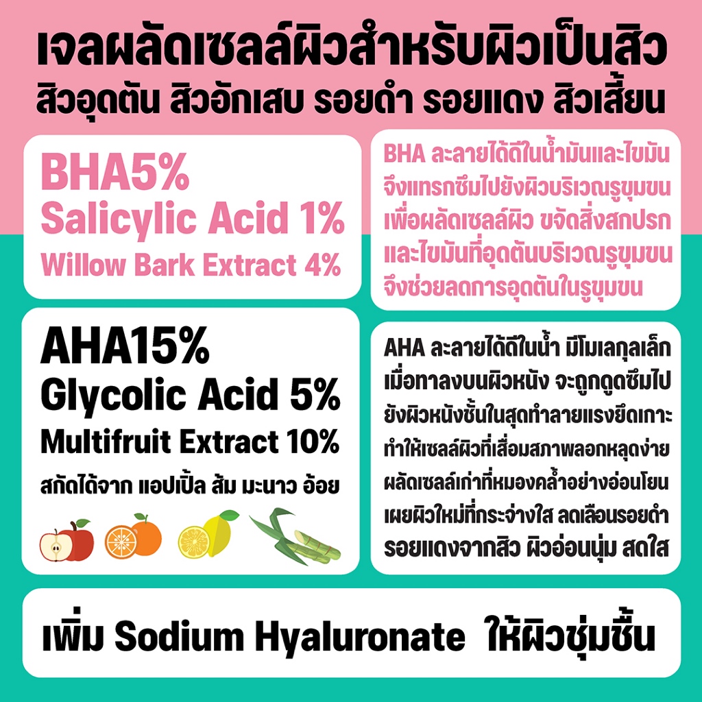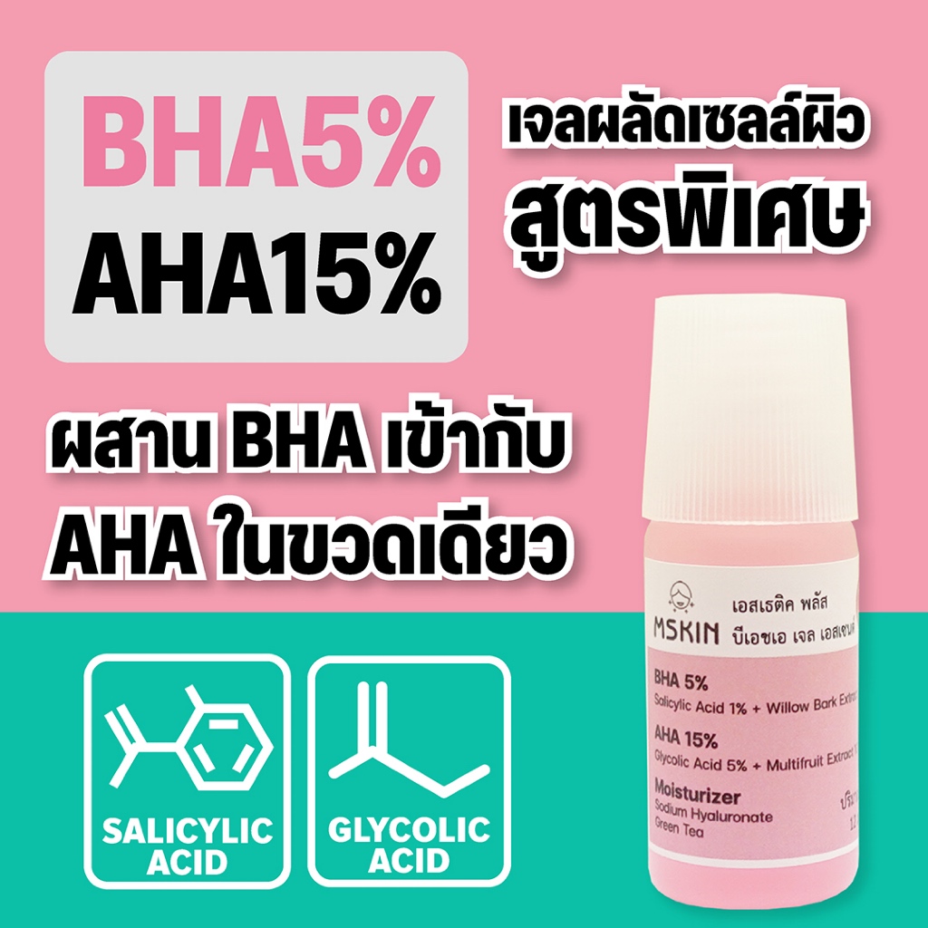 บีเอชเอ เจล เอสเซนต์ BHA 5% AHA 15% เจลผลัดเซลล์ผิว ลดสิวอุดตัน ลดเลือนรอยดำ BHA3