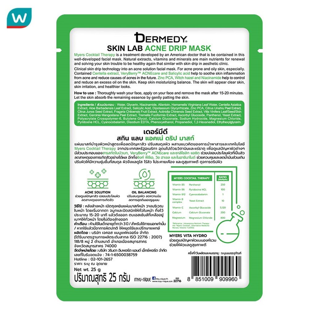 Dermedy เดอร์มีดี สกินแลบ แอคเน่ ดริป มาสก์ 1 แผ่น มาสก์หน้า ลดสิว ปรับสมดุลผิว ปลอบประโลมผิว