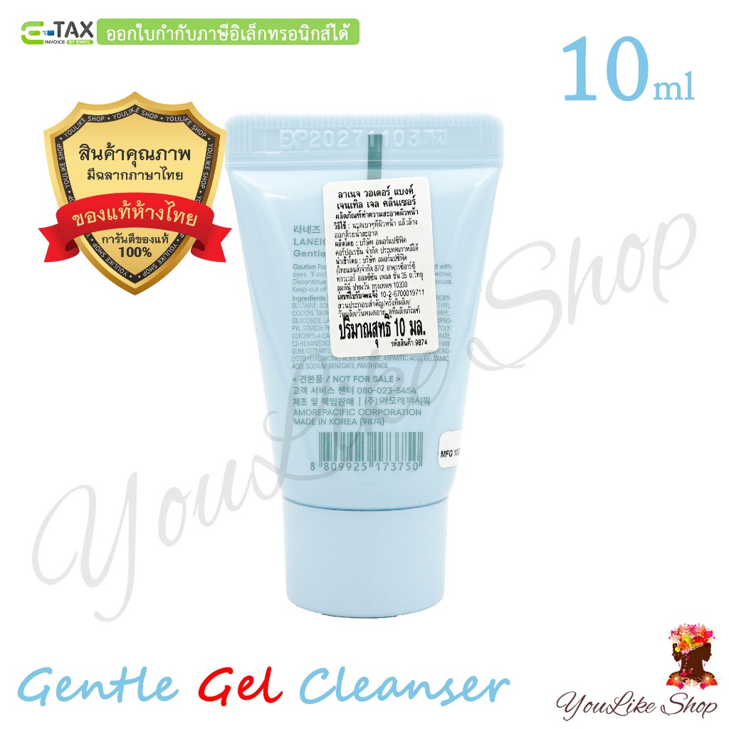 Laneige Water Bank Gentle Gel Cleanser (10 ml) คลีนซิ่งเจลทรงประสิทธิภาพ [ผิวแห้ง ผิวบอบบาง Sensitive pH เป็นกลาง]