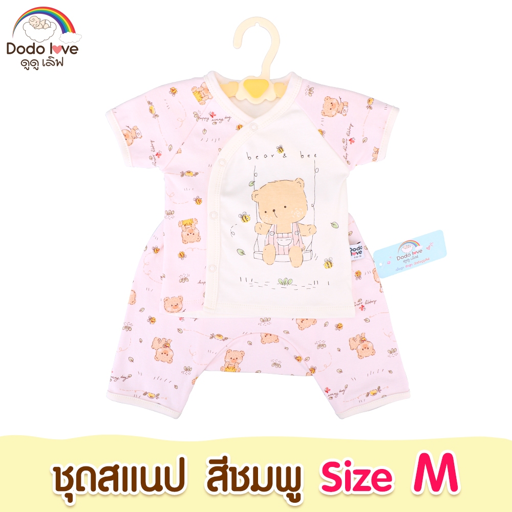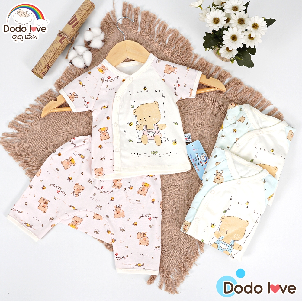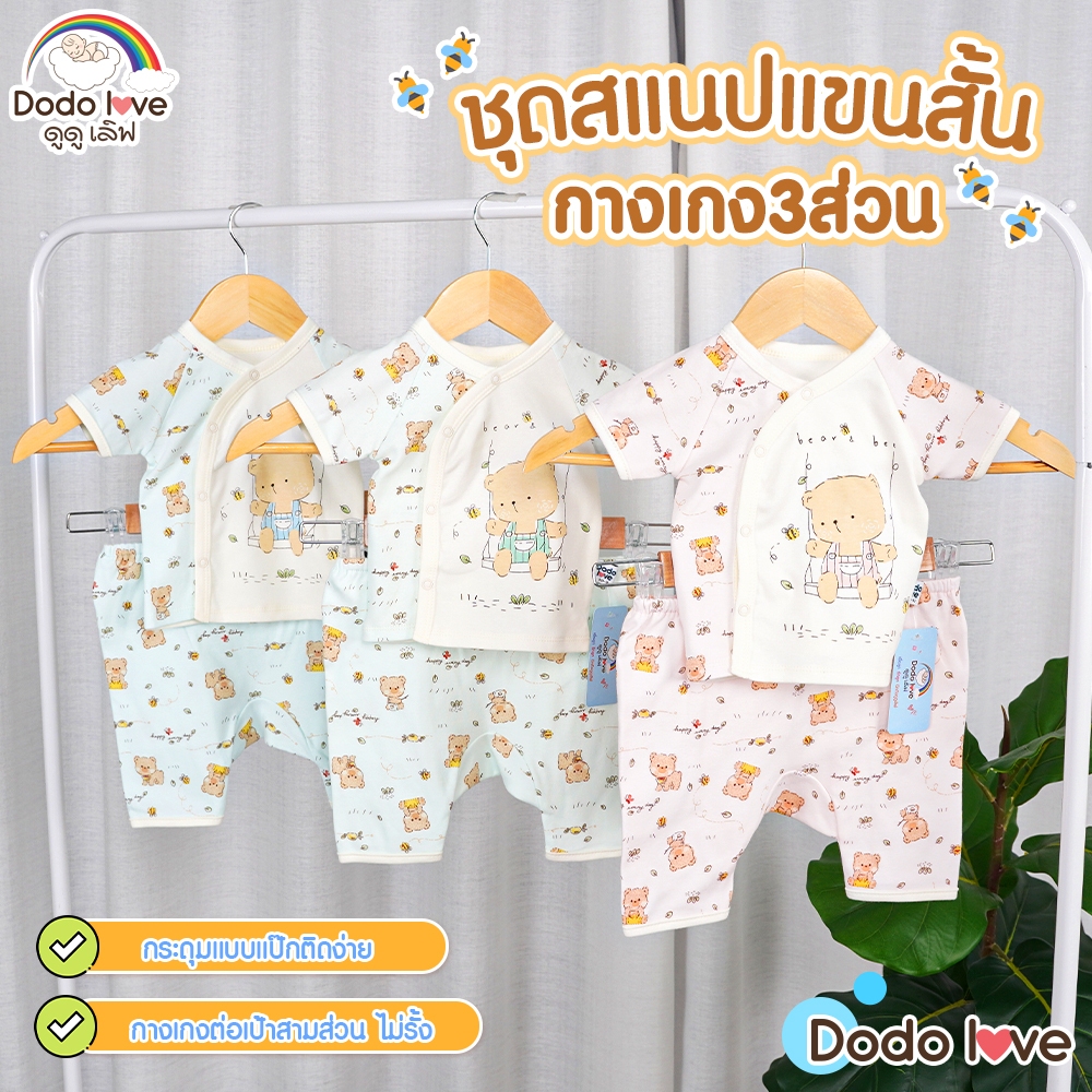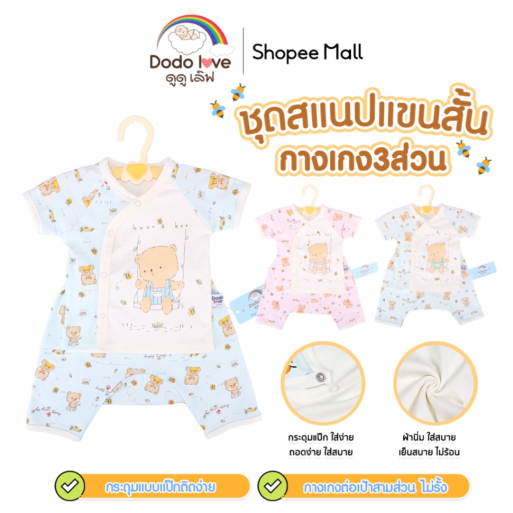 DODOLOVE ชุดสแนปแขนสั้น+กางเกงต่อเป้าขาสามส่วน ลายBear and Bee ชุดเด็ก เสื้อผ้าเด็ก