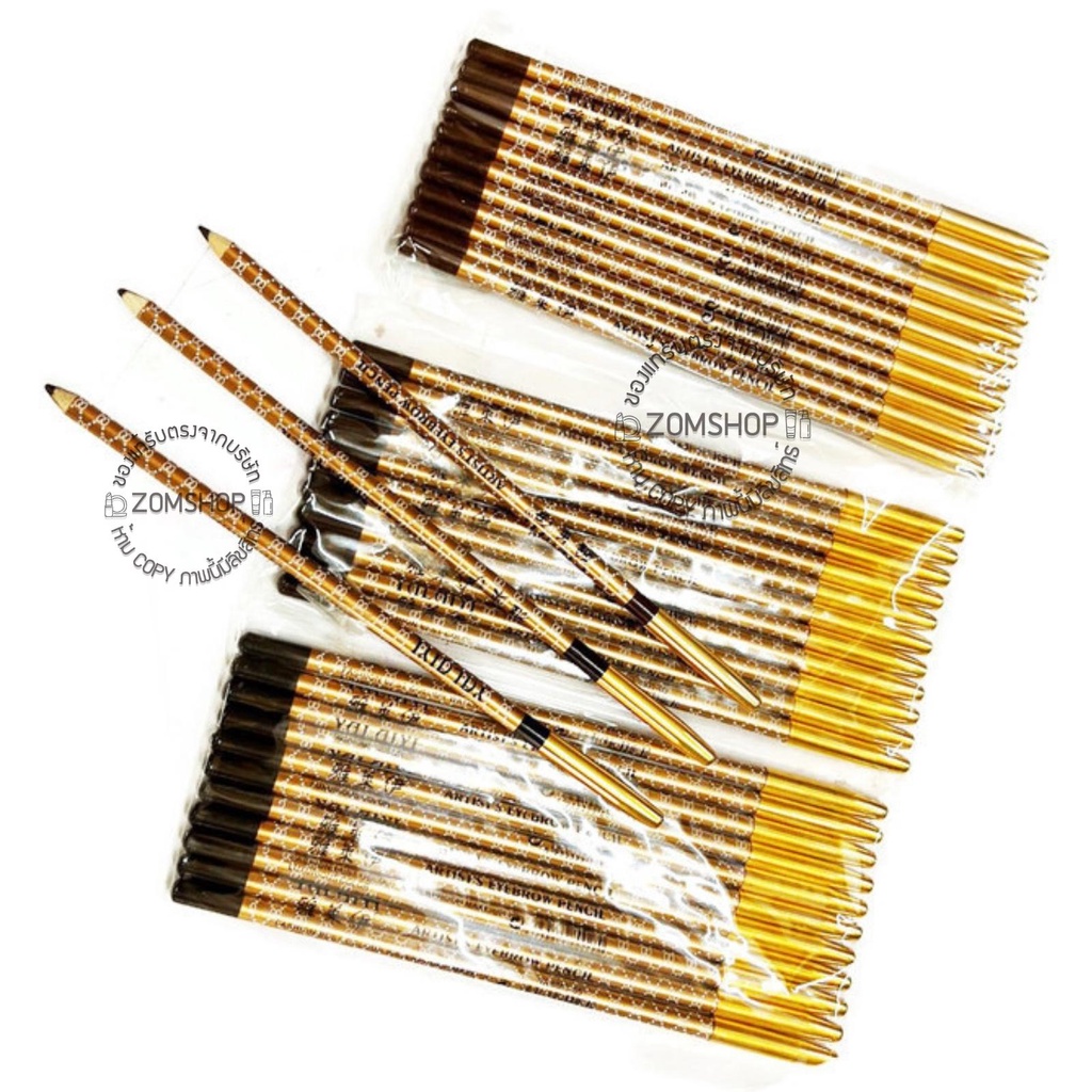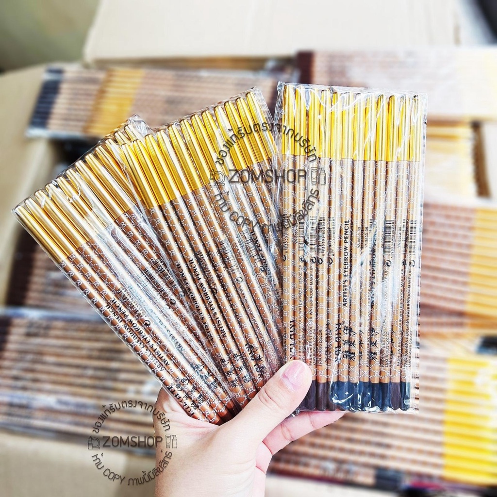 สีทอง【แพ็ค/12ชิ้น】ดินสอเขียนคิ้ว ปอกเหล็ก Slim เส้นเล็ก เส้นคม กันน้ำ ARTIST'S EYEBROW PENCIL
