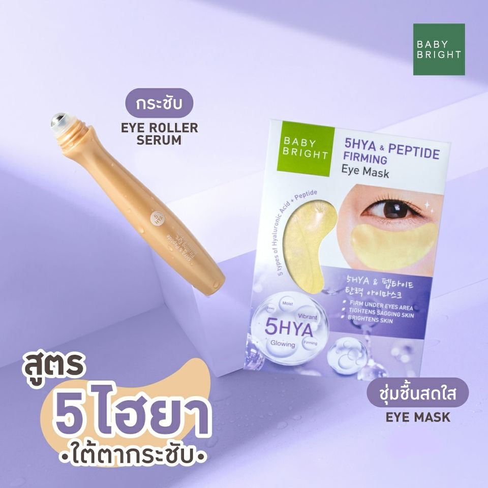 Set【สีม่วง💜】ลูกกลิ้ง+มาส์ก1คู่ 【ตึงกระชับ】BABY BRIGHT 5HYA & PEPTIDE FIRMING EYE MASK & EYE ROLLER SERUM 15ml