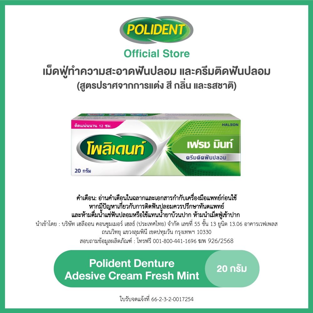 [เลือกสูตรได้] POLIDENT ADHESIVE CREAM 20G โพลิเดนท์ ครีมติดฟันปลอม