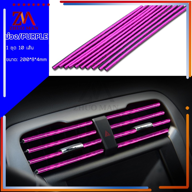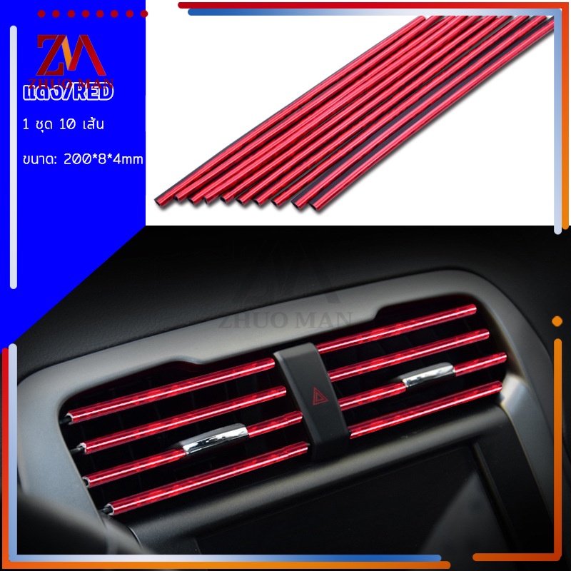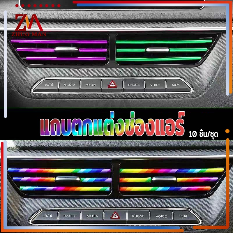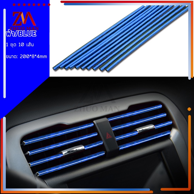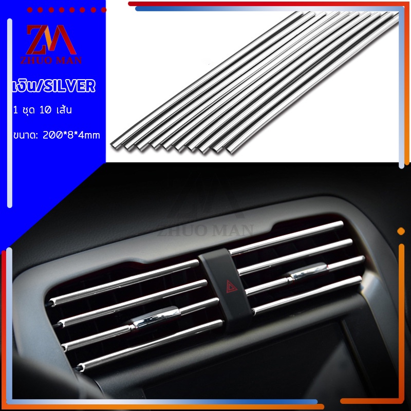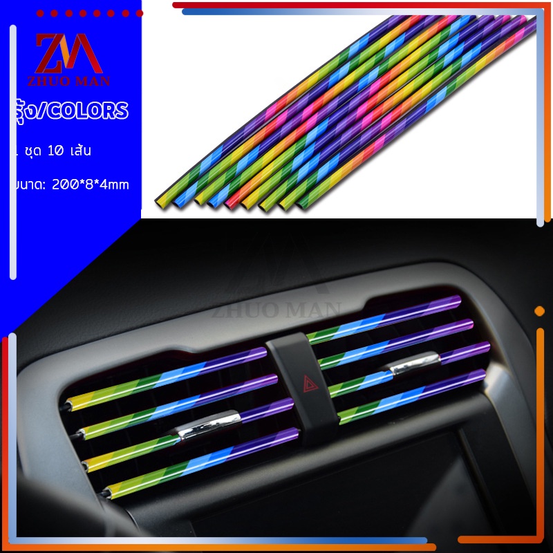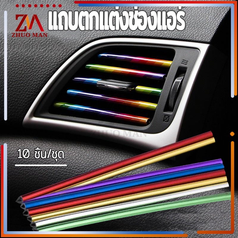 แถบตกแต่งช่องแอร์ 10ชิ้น เส้นแต่งคอนโซลช่องแอร์DIYช่องแอร์ ของตกแต่งในรถยนต์ ติดตั้งง่าย มีให้เลือก5สี
