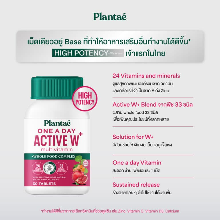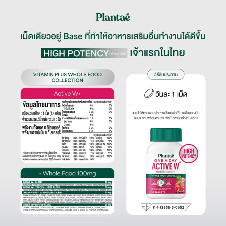 Plantae Active W+ Multivitamin 30 Tab แพลนเต้ แอคทิฟ ดับบลิวพลัส มัลติวิตามิน 30 เม็ด