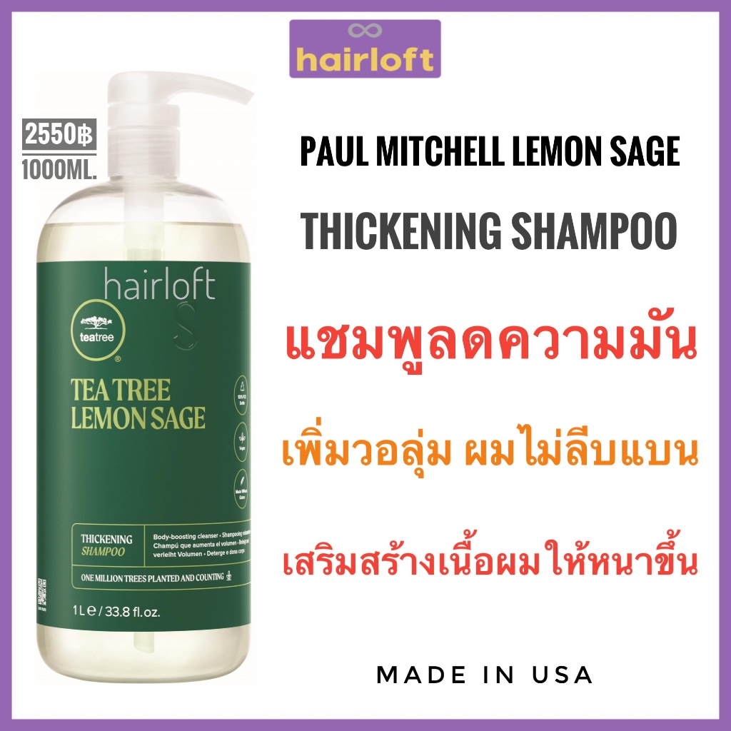 Paul Mitchell Tea Tree Lemon Sage Thickening Shampoo 1000ml พอล มิทเชล ที ทรี เลมอน เซจ ทิคเค็นนิ่ง แชมพู พอลมิทเชล