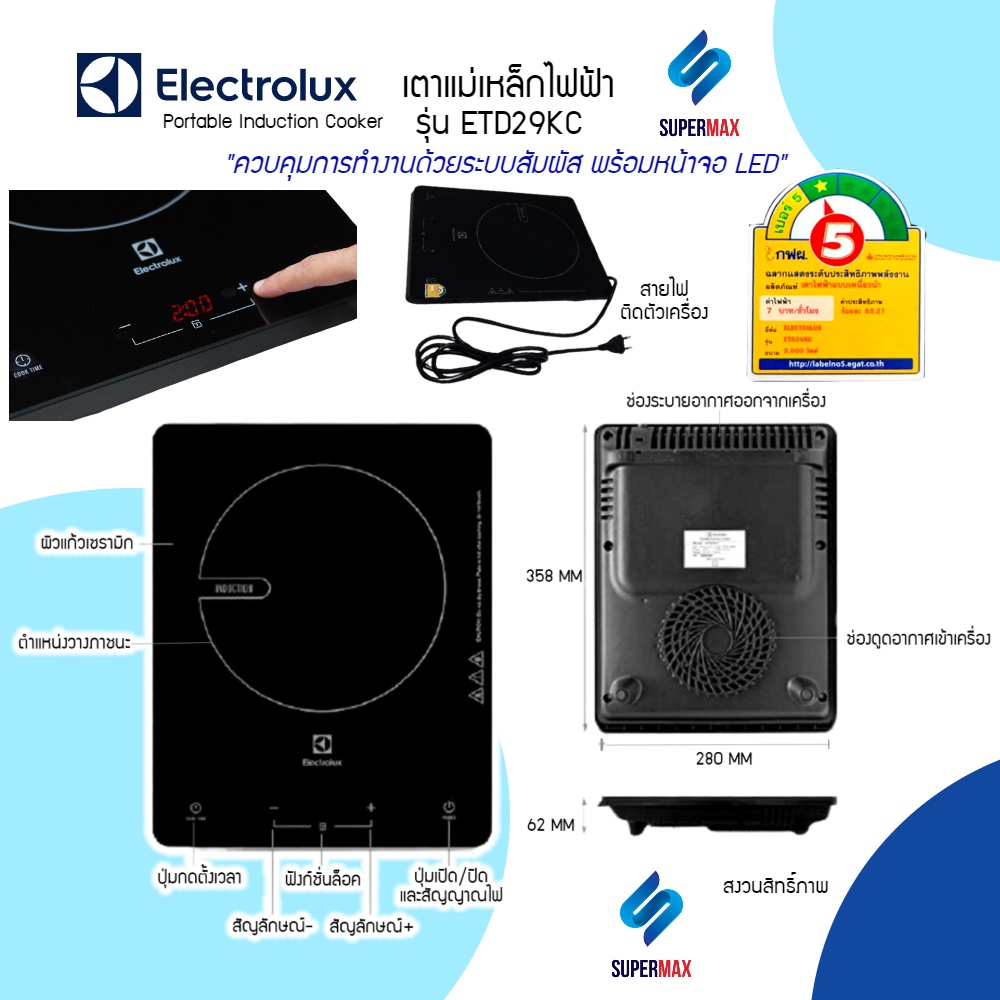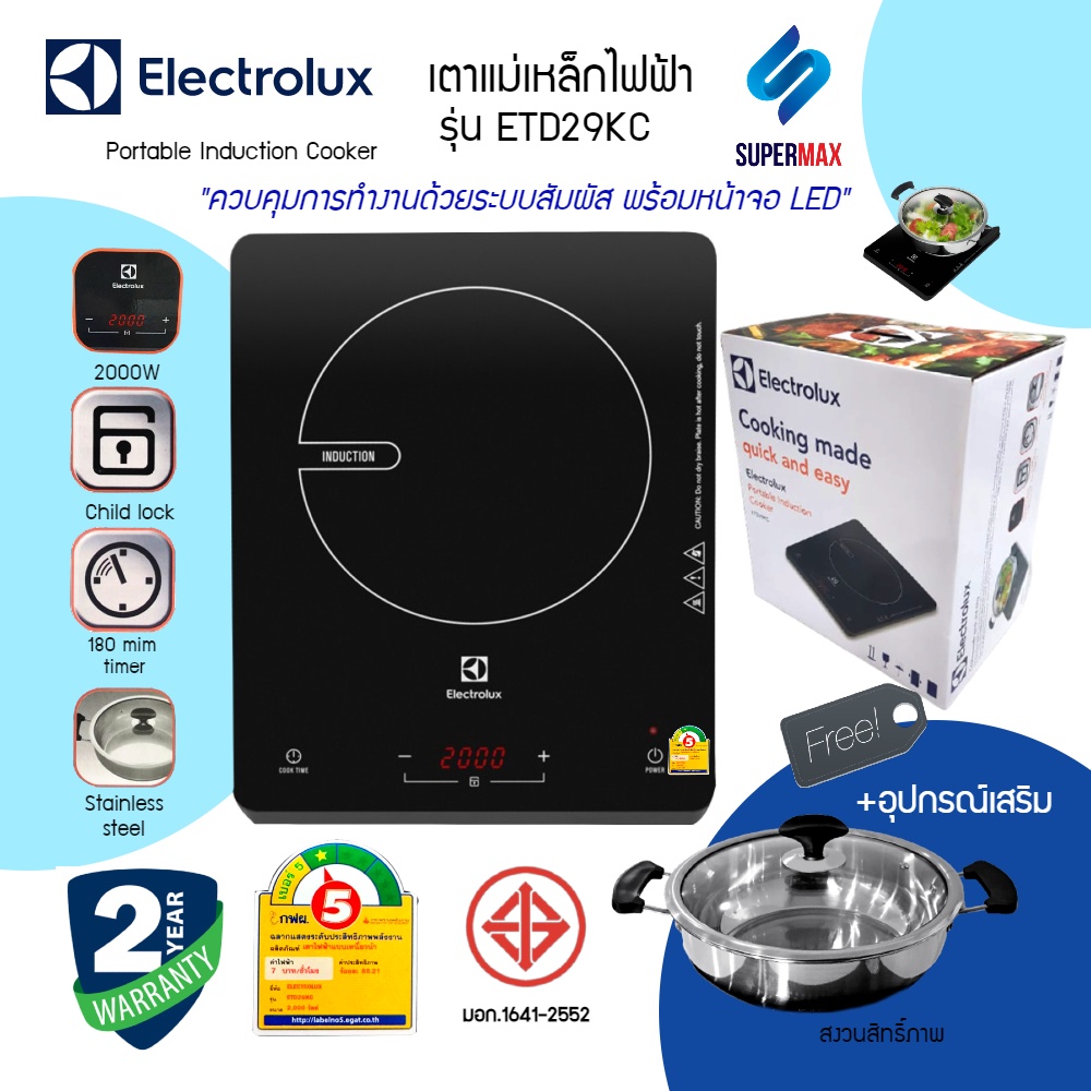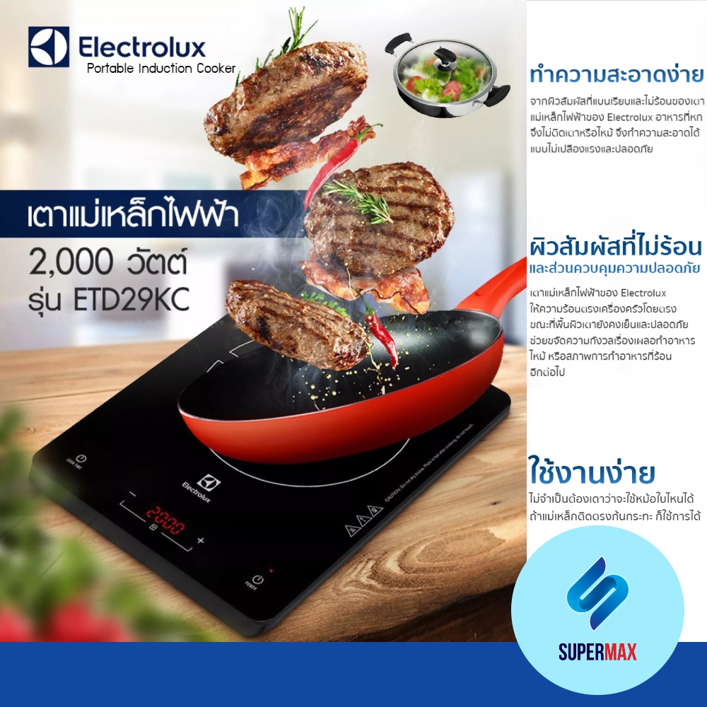 Electrolux เตาแม่เหล็กไฟฟ้า รุ่น ETD29KC กำลังไฟ 2000W พร้อม หม้อและฝากระจก รับประกันสินค้า2ปี