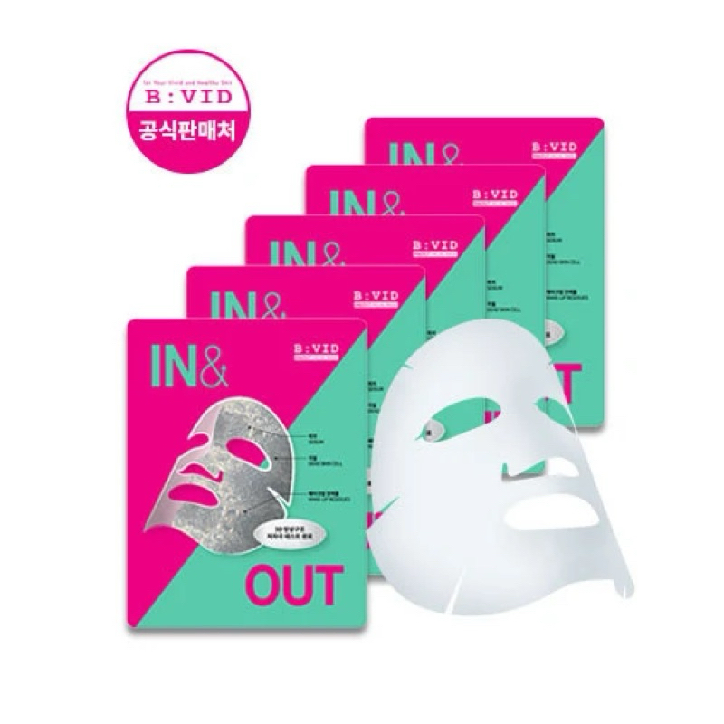 (สั่งในไลฟ์โค้ดลด100) มาส์กดีทอกซ์ผิว B:VID In & Out Facial Mask 1 กล่อง 5 แผ่น