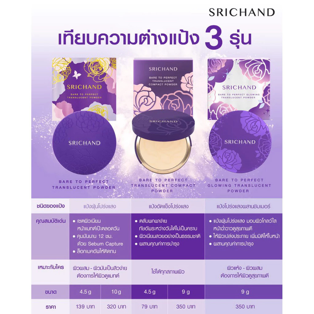 🔥แท้/ดีลสุดคุ้ม/ไลฟ์ทุกวัน🔥(1ชิ้น) SRICHAND Bare to Perfect Translucent Powder แป้งฝุ่น 10g. (L)