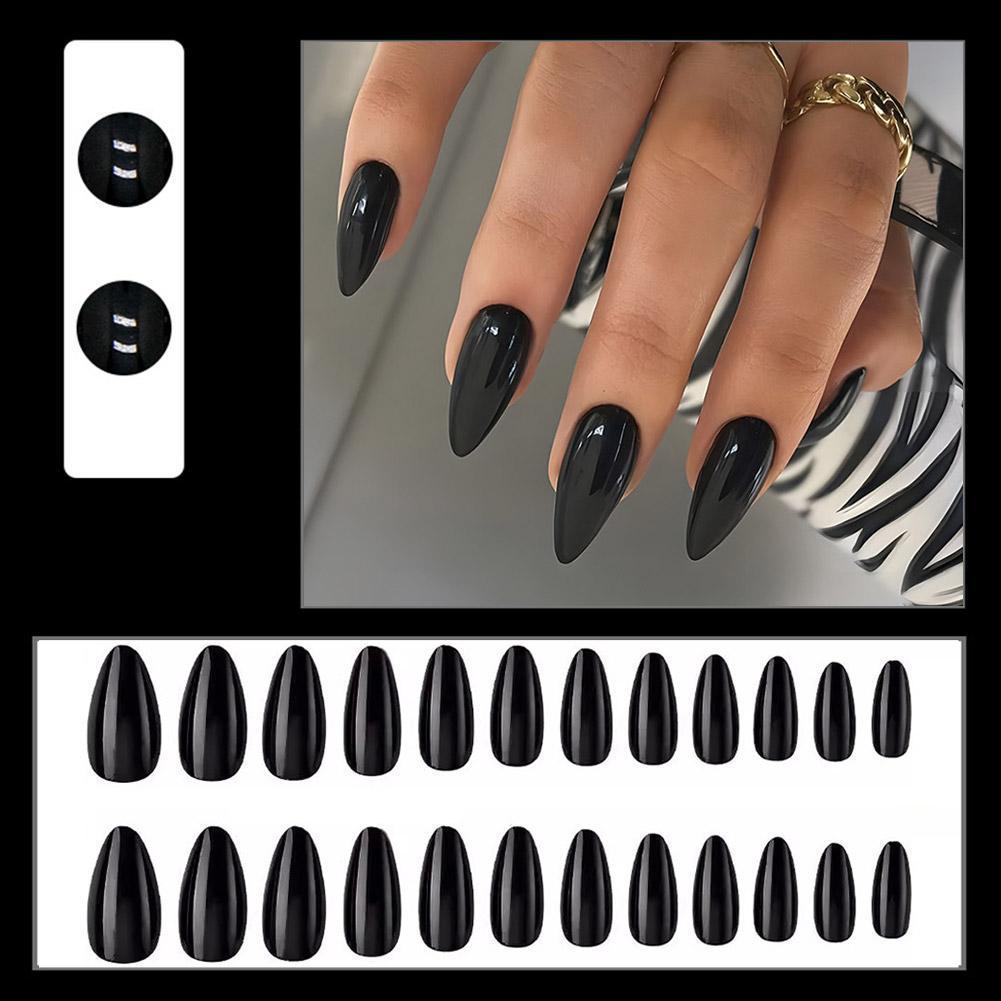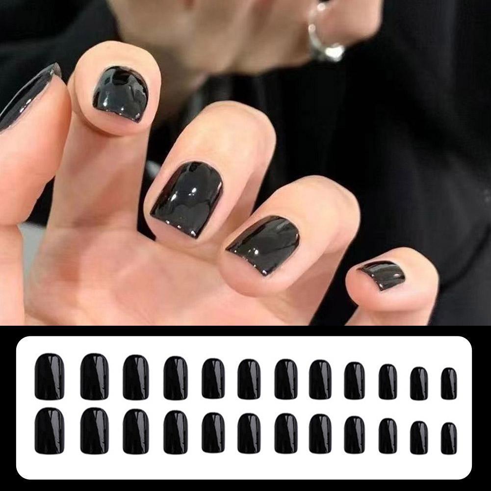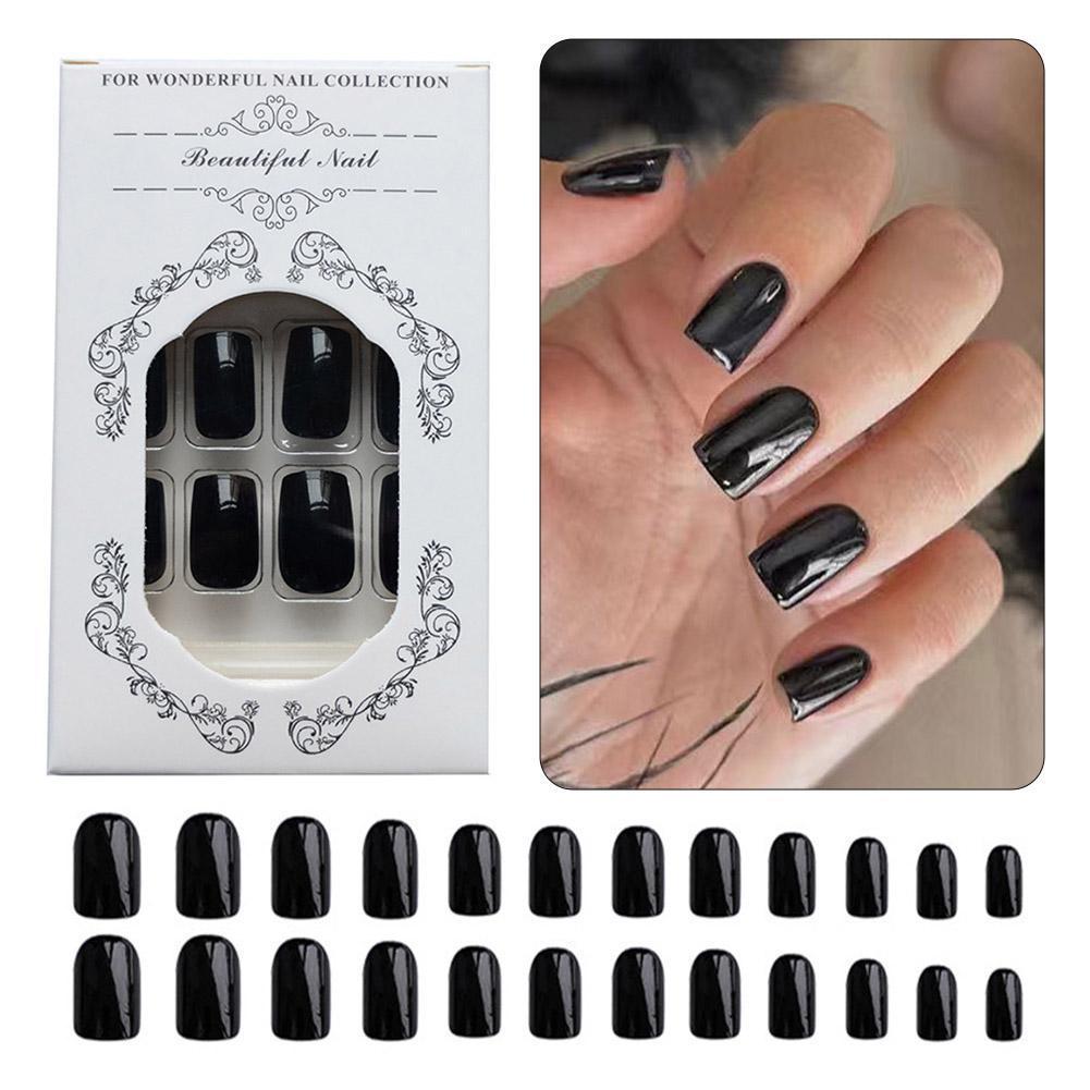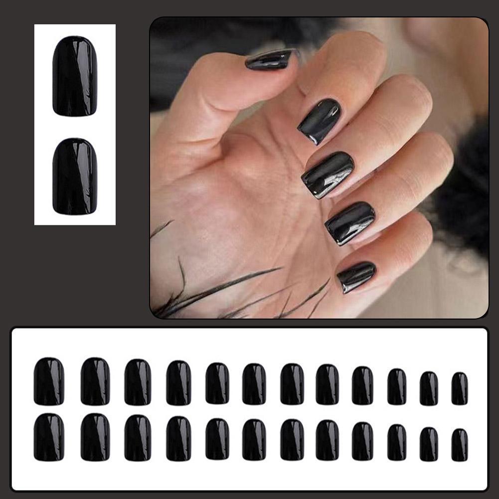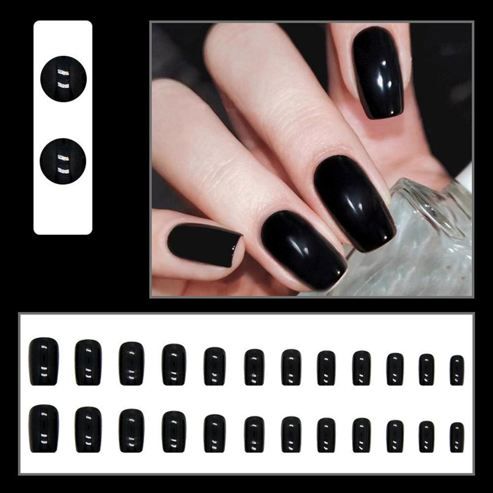 ยาวสแควร์สีดําเล็บปลอมยาวพิเศษเงาเล็บทาเล็บปลอมสีบัลเล่ต์เล็บแฟชั่น ง3ย2