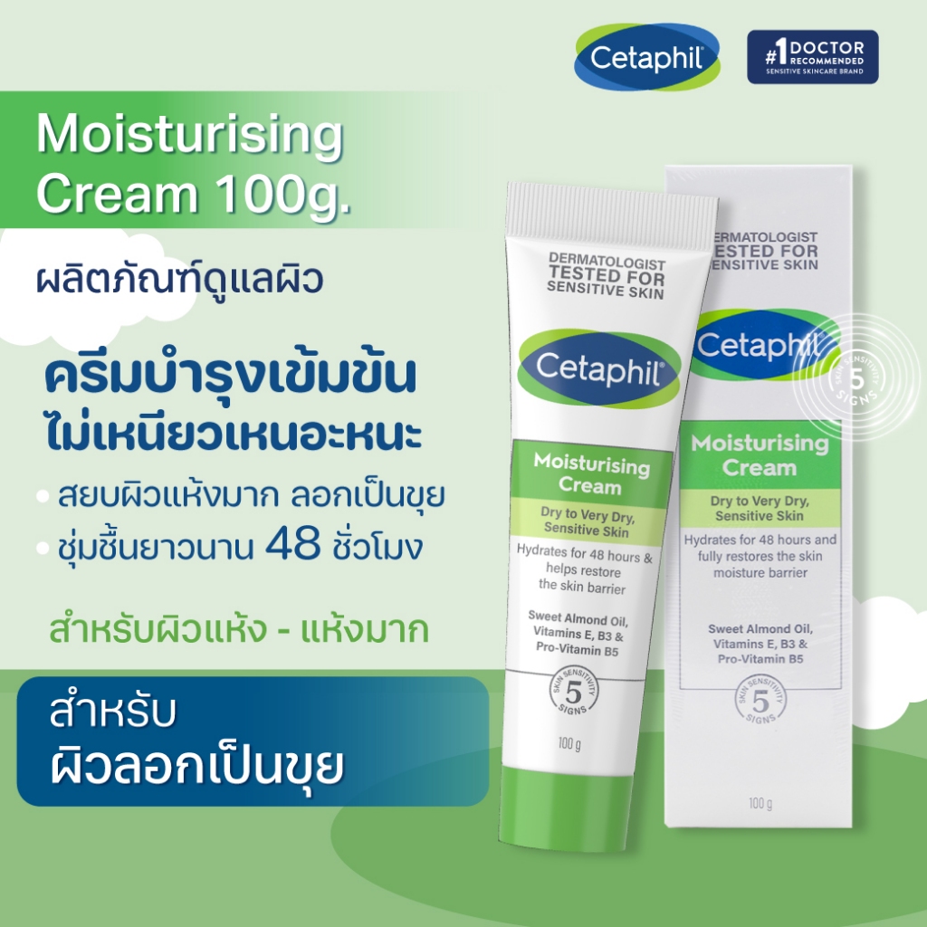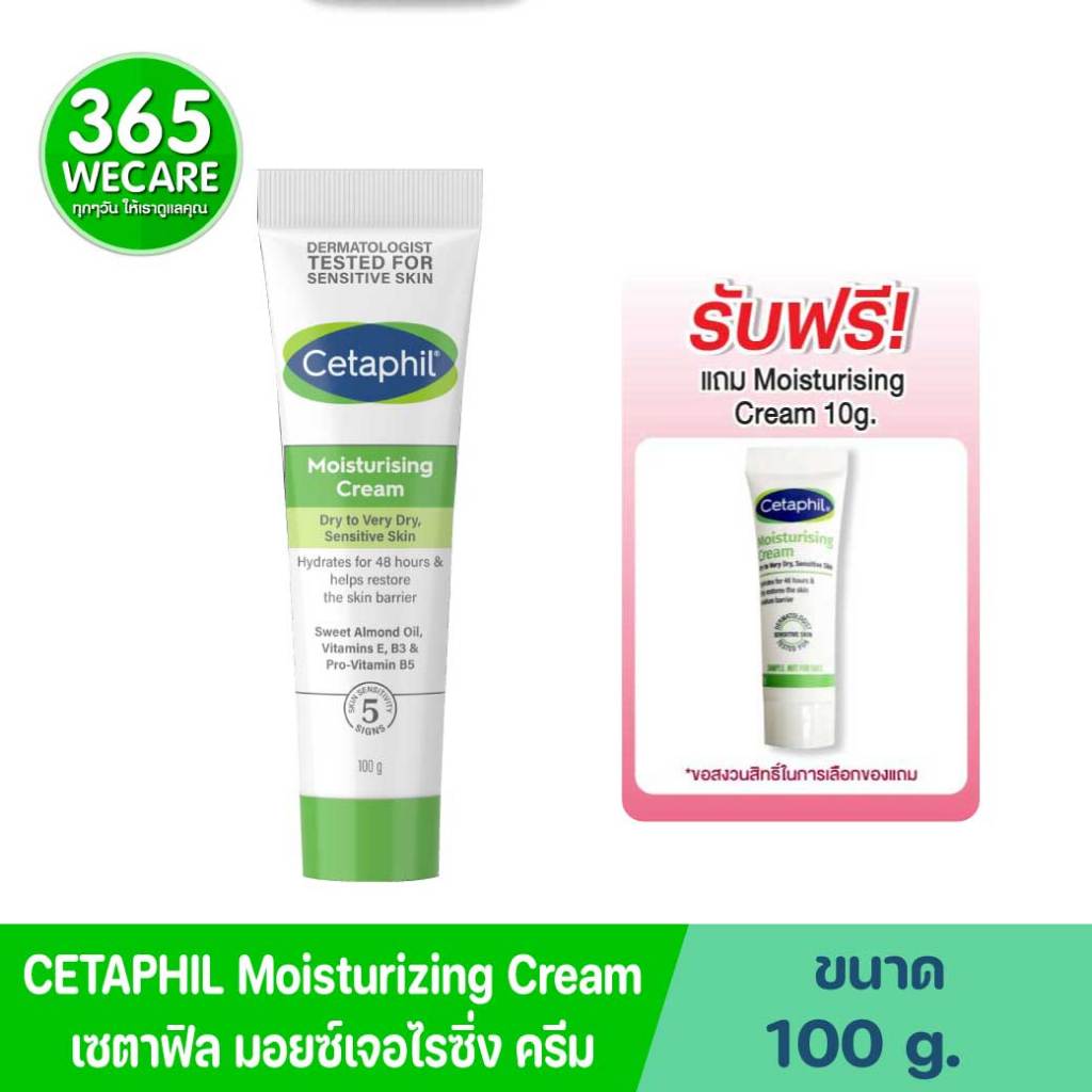 แถม Moist Cream 10g*CETAPHIL Moisturizing Cream 100g ให้ความชุ่มชื้นอย่างเข้มข้นตลอด 24 ชั่วโมง 365wecare