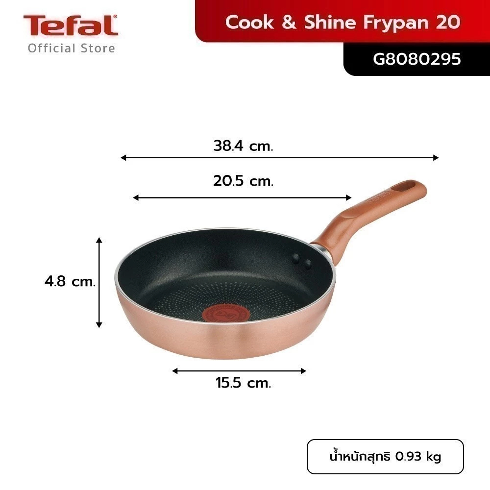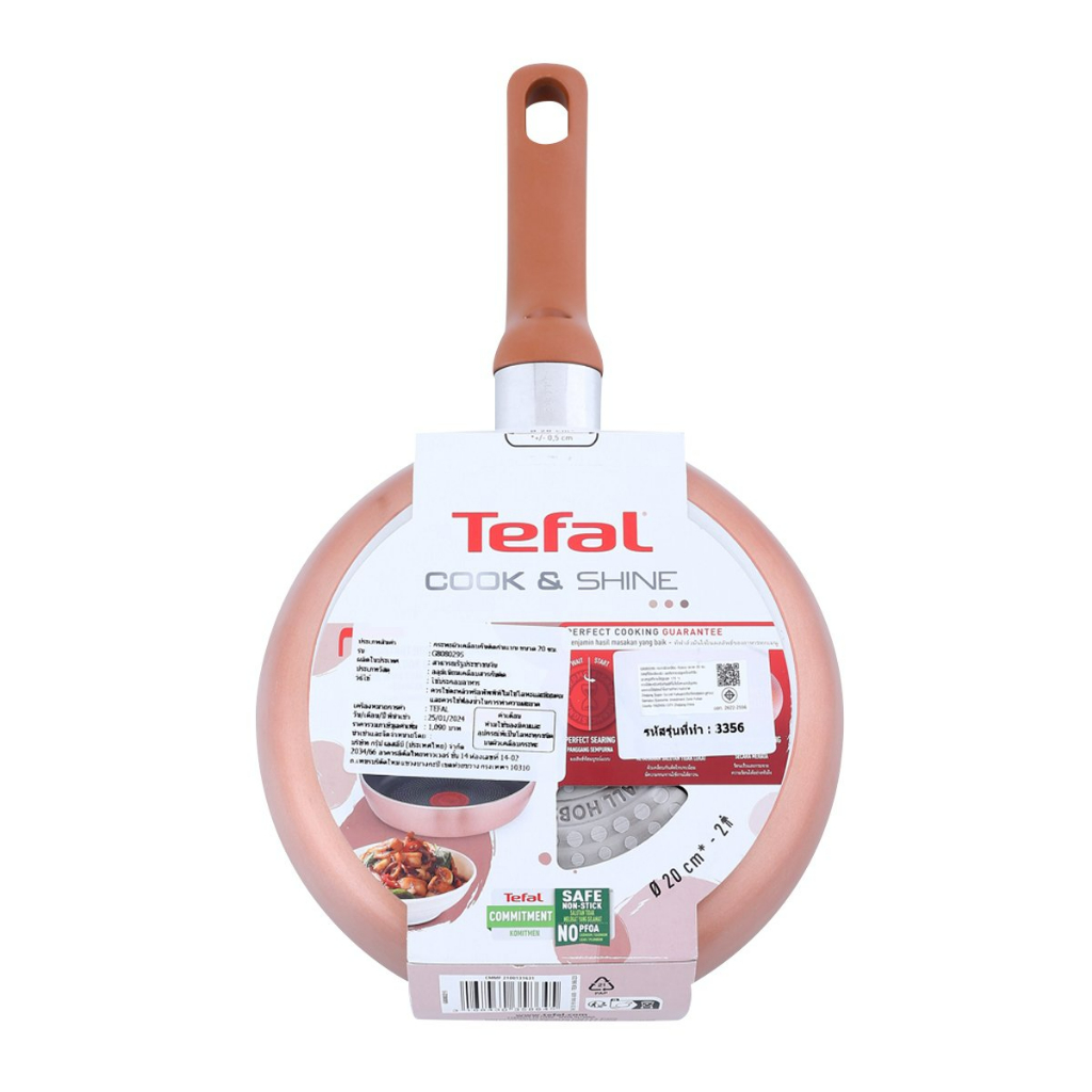 Tefal Cook and Shine กระทะก้นแบน ขนาด 20 ซม. ใช้ได้กับเตาทุกประเภท รุ่น G8080295 รับประกัน 2 ปี