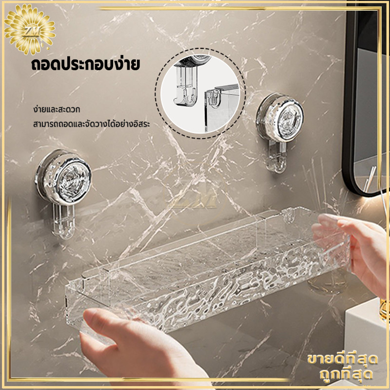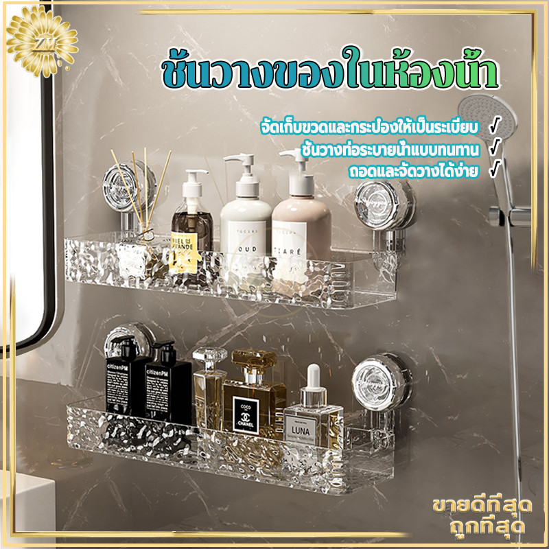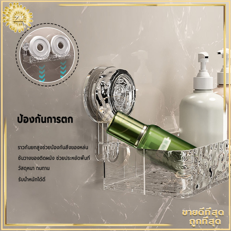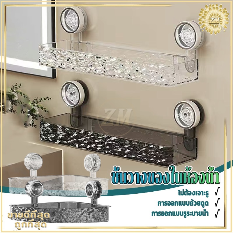 ชั้นวางติดผนัง ชั้นวางของในห้องน้ำ ชั้นแขวน ชั้นวางเข้ามุม ไม่ต้องเจาะรู แบบถ้วยดูดอเนกประสงค์ การออกแบบรูระบายน้ำ