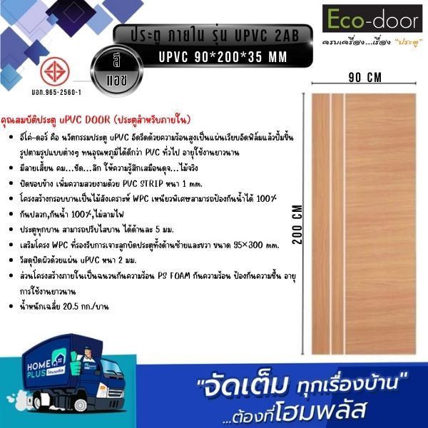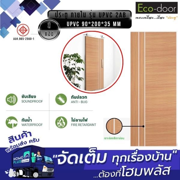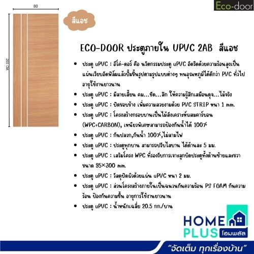 ECO-DOOR ประตูภายใน UPVC 2AB 3.8*80*200 สีแอช