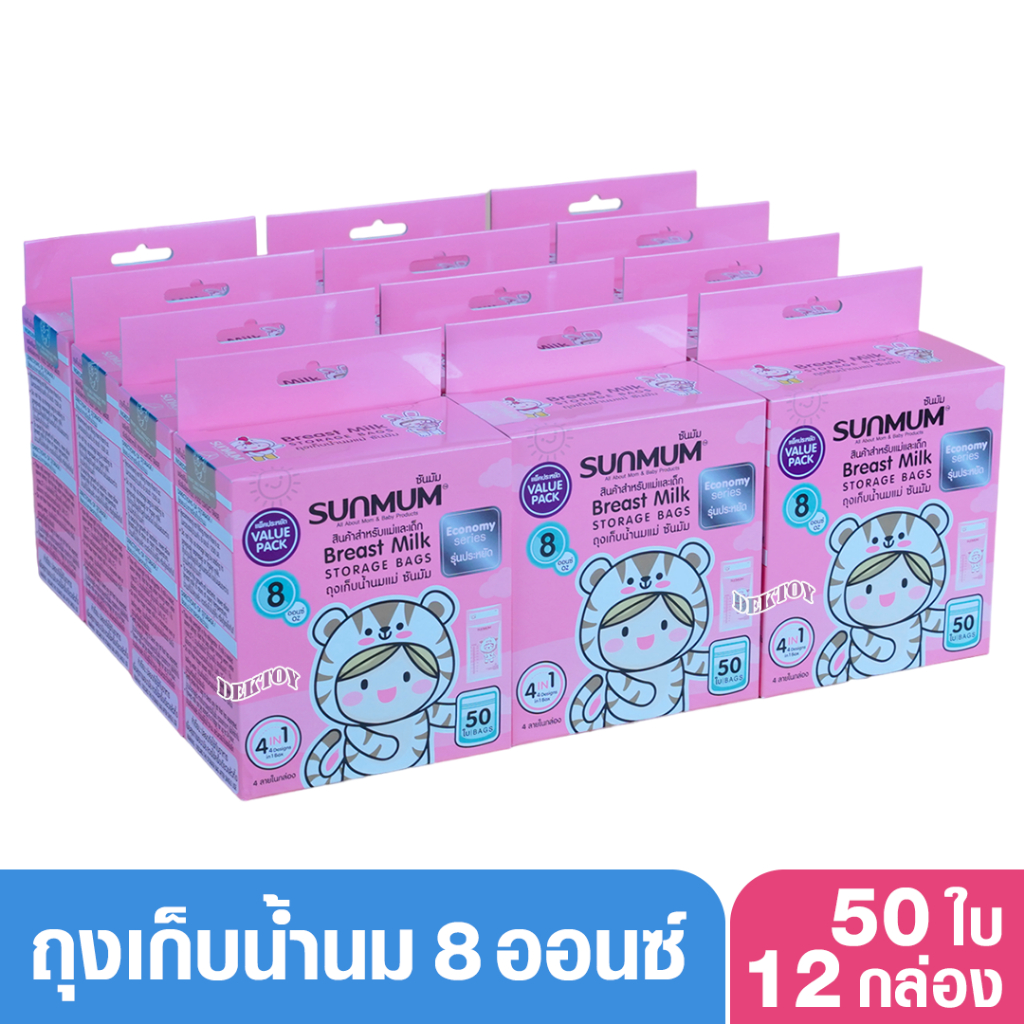 12 กล่อง Sunmum ซันมัม ถุงเก็บน้ำนมซันมัม 8 ออนซ์ รุ่น Economy 1 กล่องบรรจุ 50 ใบ (600ใบ)