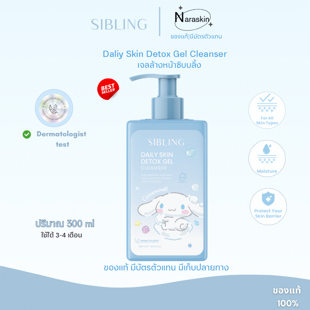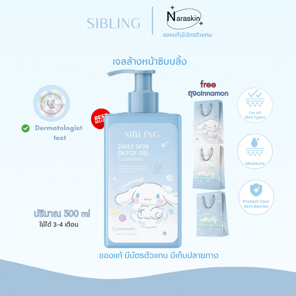 (ซื้อเจล 300 ml เเถมถุงชินนาม่อน )เจลล้างหน้าซิบบลิ้ง 300 ml ใช้ได้ 3-4 เดือน daily cleansing gel