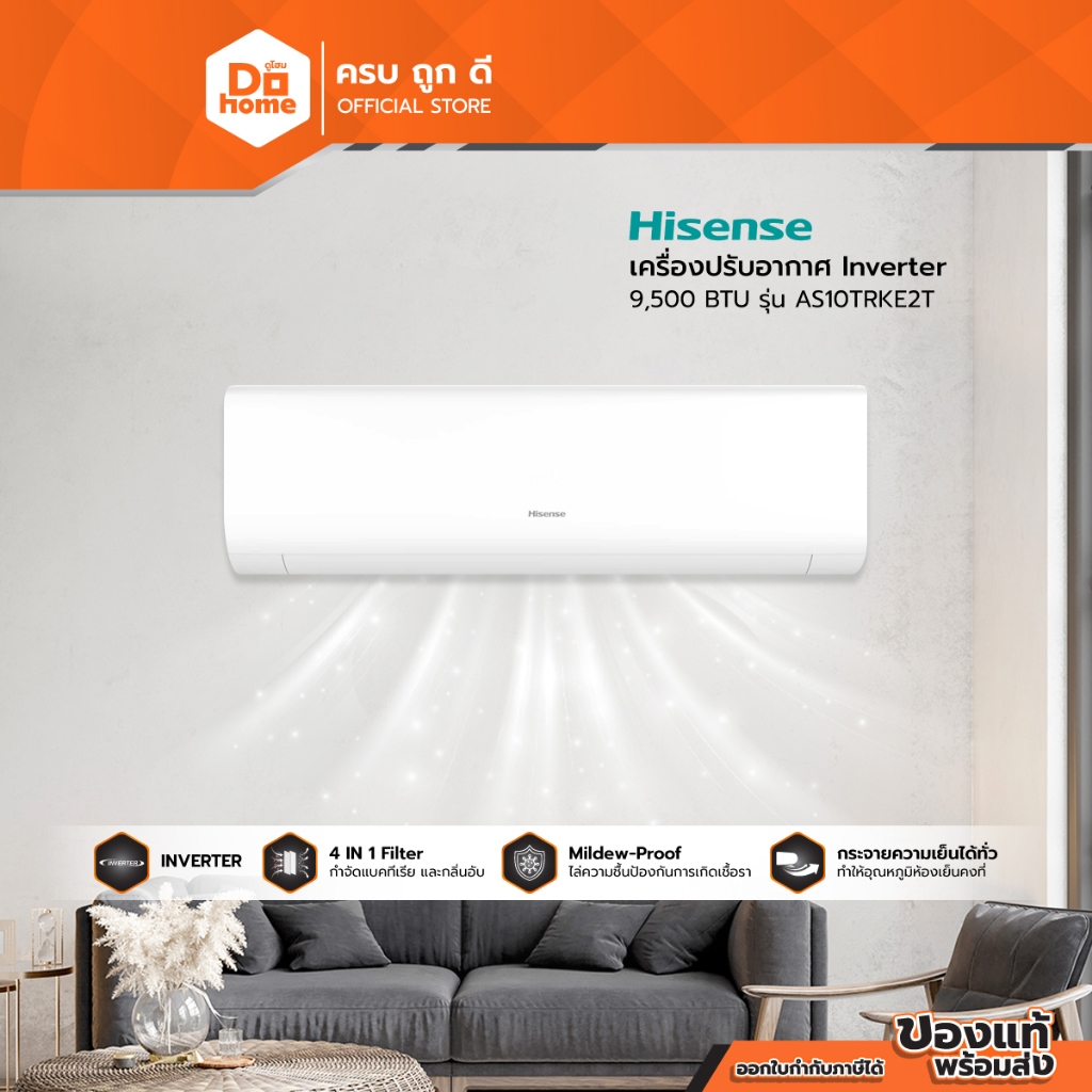 HISENSE เครื่องปรับอากาศ Inverter 9,500 BTU รุ่น AS10TRKE2T |ZWF|