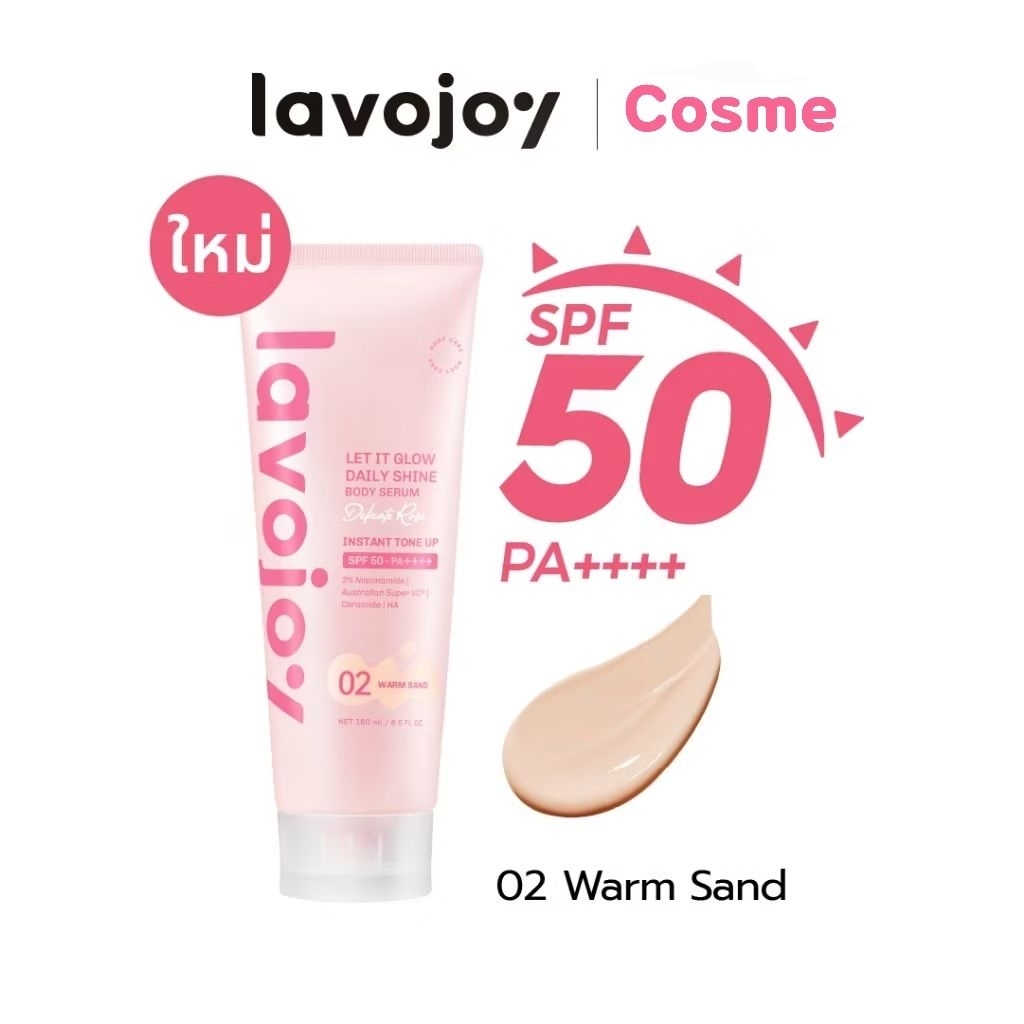 สูตรใหม่ โลชั่นโทนอัพ ลาโวจอย LAVOJOY LET IT GLOW DAILY SHINE BODY SERUM INSTANT TONE UP SPF50+ ขนาด 180 มล.