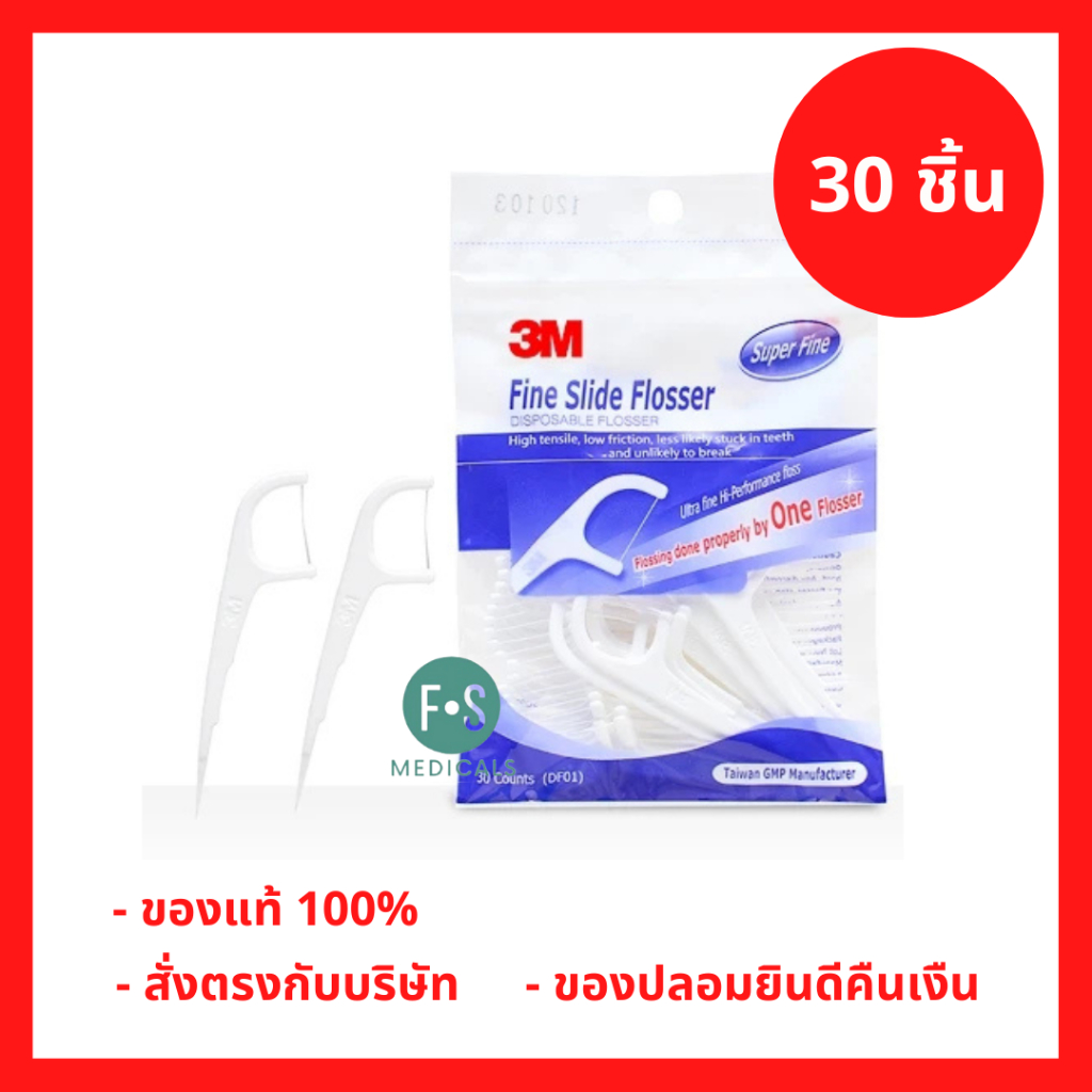 ล็อตใหม่!! 3M ไหมขัดฟัน ชนิดด้าม Disposable Flosser บรรจุ 30 ชิ้น (P-8132)
