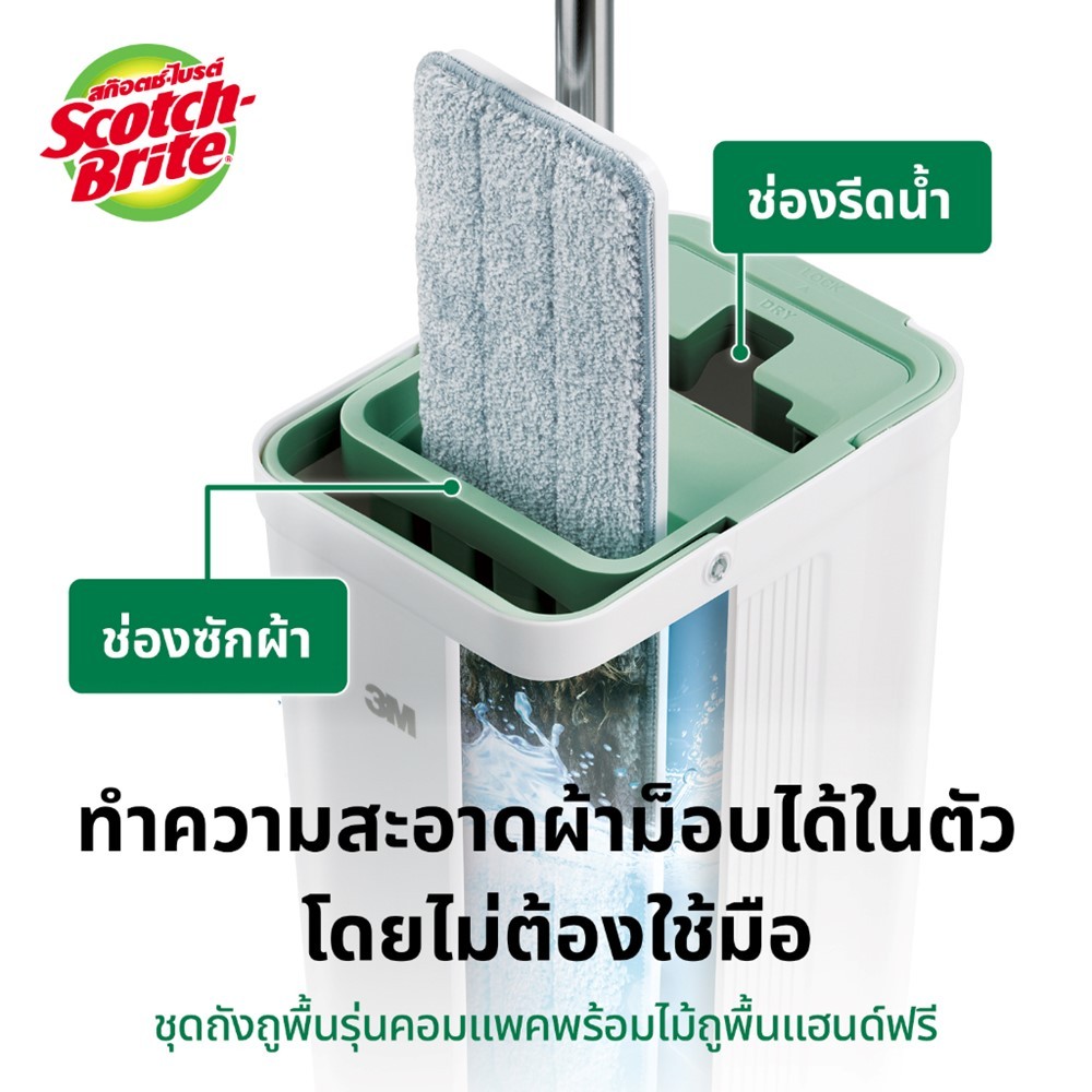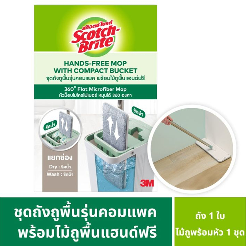3เอ็ม สก๊อตช์-ไบรต์ ชุดถังถูพื้น รุ่นคอมแพค พร้อมไม้ถูพื้นแฮนด์ฟรี 3M SCOTCH-BRITE COMPACT MOP BUCKET