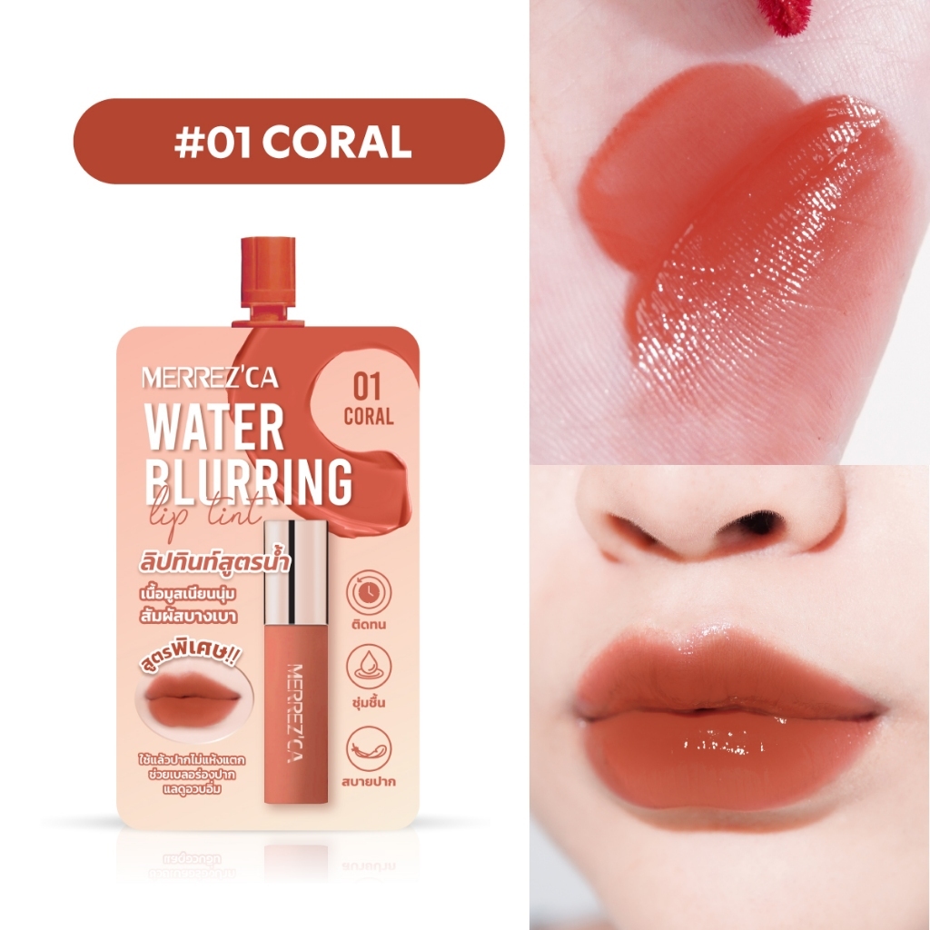 Merrez'ca Water Blurring Lip Tint เมอร์เรซกา วอเตอร์ เบลอลิ่ง ลิปทินท์สูตรน้ำ เนื้อมูสบางเบา 2 มล.