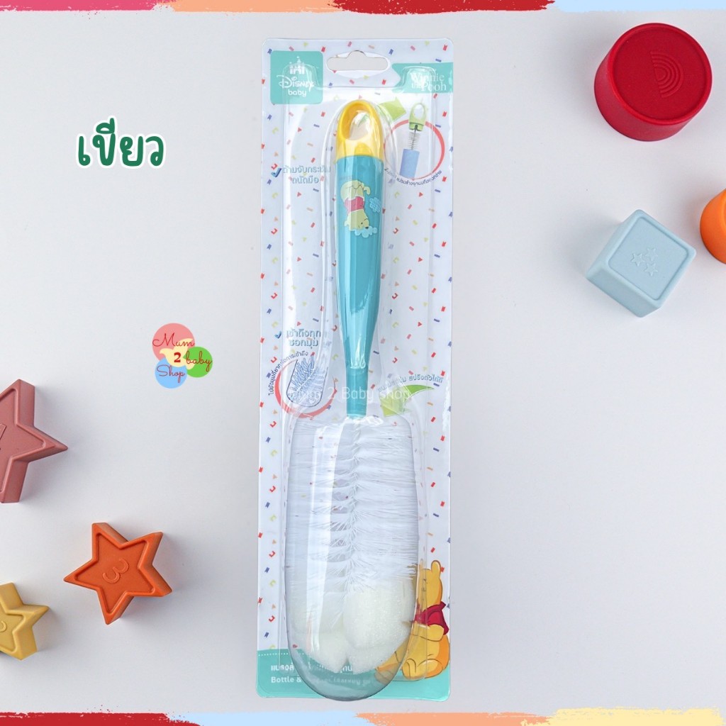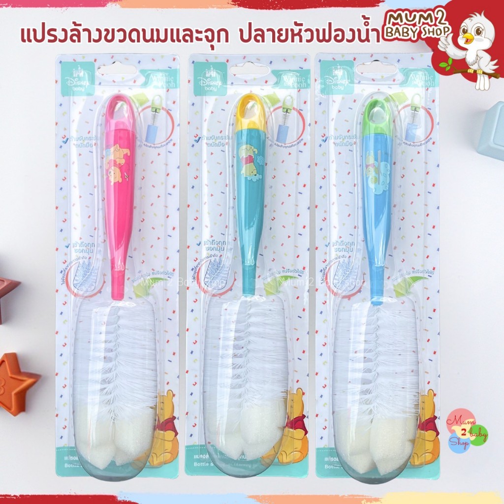 แปรงล้างขวดนมหมีพูห์ พร้อมแปรงล้างจุก หัวฟองน้ำ,หัวแฉก เบบี้แคร์