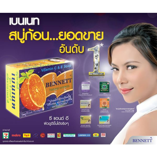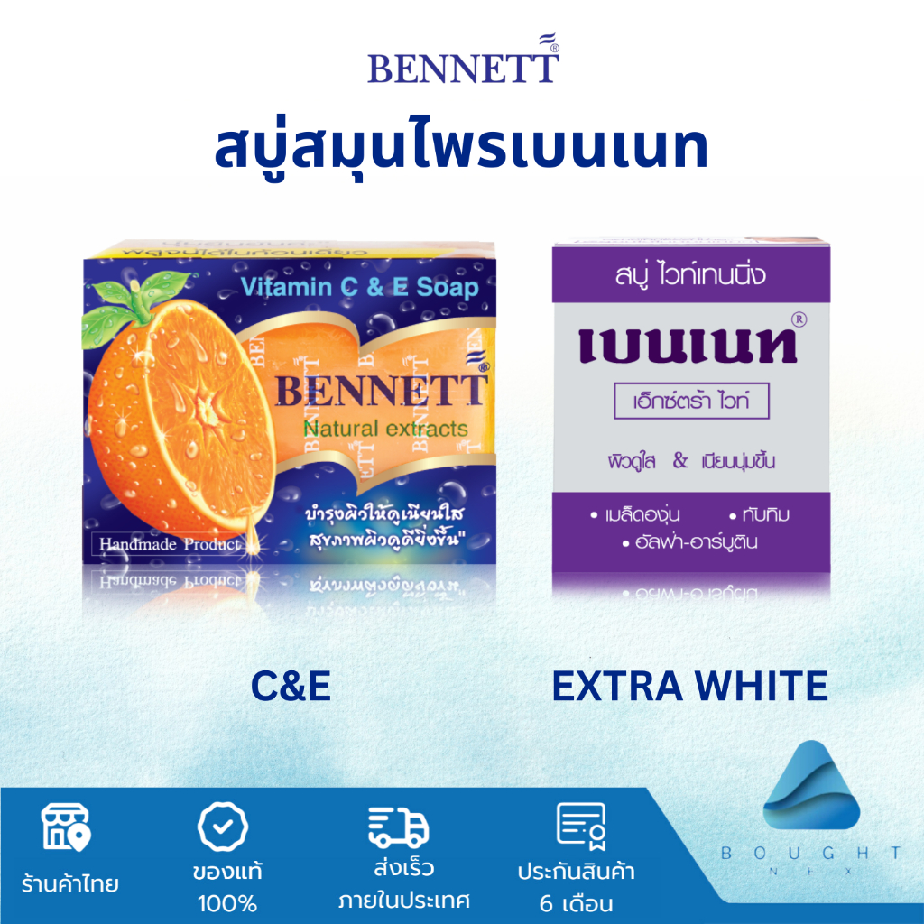 BENNETT C&E เบนเนท สบู่วิตามินอีซี&อี สบู่ก้อน 130g ไวท์เทนนิ่ง ผิวขาวกระจ่างใส จากสมุนไพรธรรมชาติ ลดสิว ฝ้า ผด