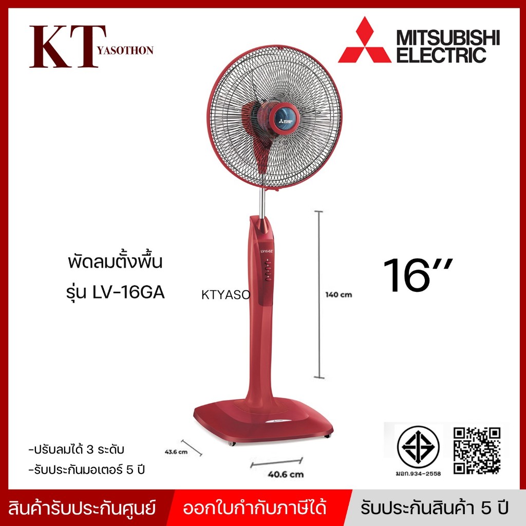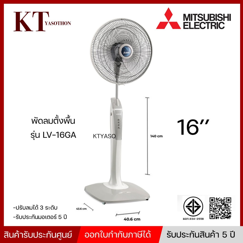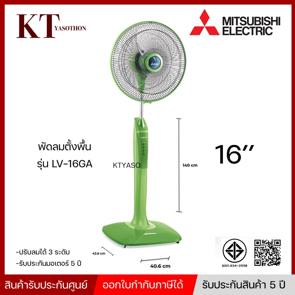 MITSUBISHI พัดลมตั้งพื้น ดีไซน์ไหม่ รุ่น LV16-GA ขนาด 16 นิ้ว ระบบตัดไฟอัตโนมัติ