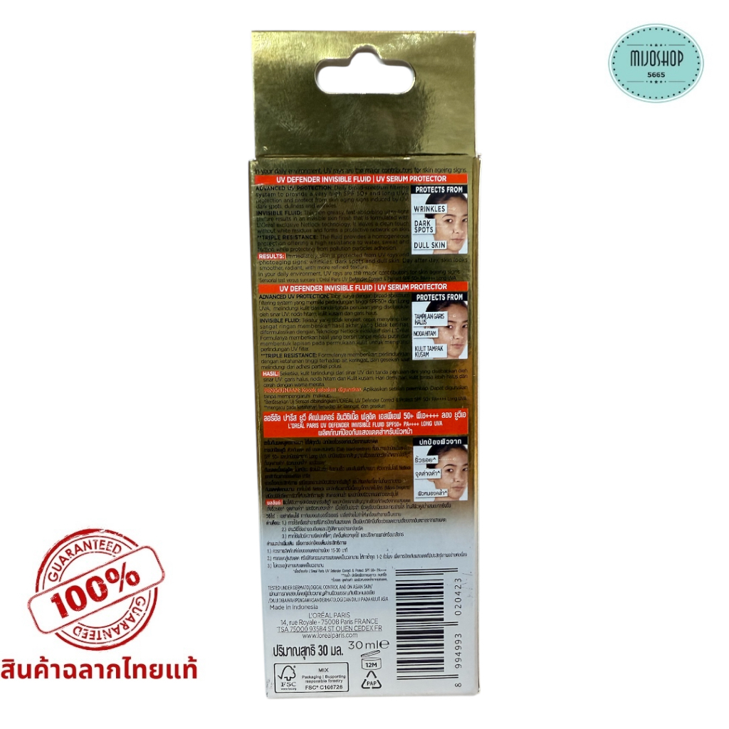 L'Oreal ลอรีอัลปารีส ยูวี ดีเฟนเดอร์ อินวิซิเบิ้ล ฟลูอิด เอสพีเอฟ50+พีเอ++++ลอง ยูวีเอ 30 มล.