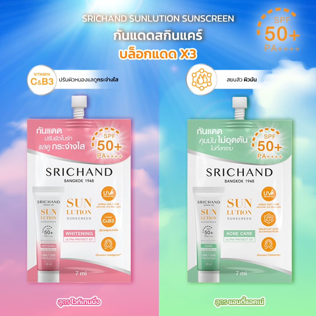 [ซอง] SRICHAND Sunlution Sunscreen กันแดด ศรีจันทร์ ซันลูชั่น ซันสกรีน 7 มล.