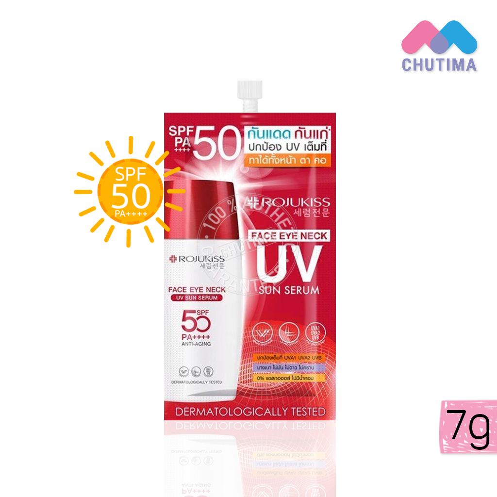 (แบบซอง) ครีมกันแดด โรจูคิส เทอร์มอล สปริงค์ วอเตอร์/ เฟส อาย เนค ยูวี เซรั่ม ROJUKISS UV SUN SERUM SPF50+ PA++++ 7g.