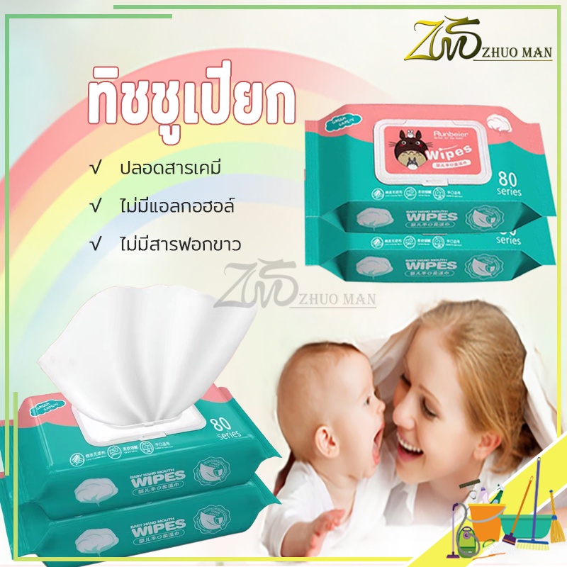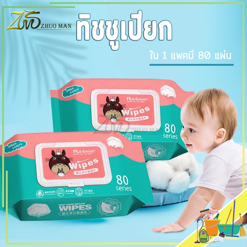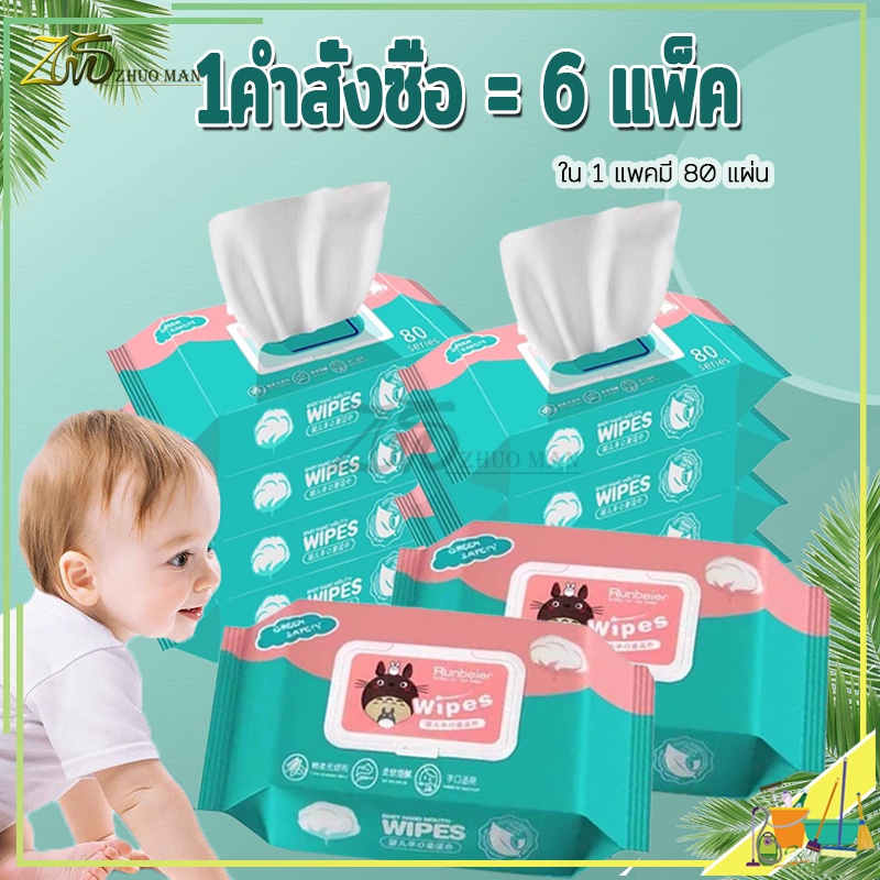 ทิชชู่เปียก กระดาษเปียก Baby Wipes ทิชชู่เปียกสําหรับเด็ก 1ห่อ/80แผ่น ห่อใหญ่ ผ้านุ่มชุ่มชื่น 1คำสั่งซื้อ =6แพ็ค