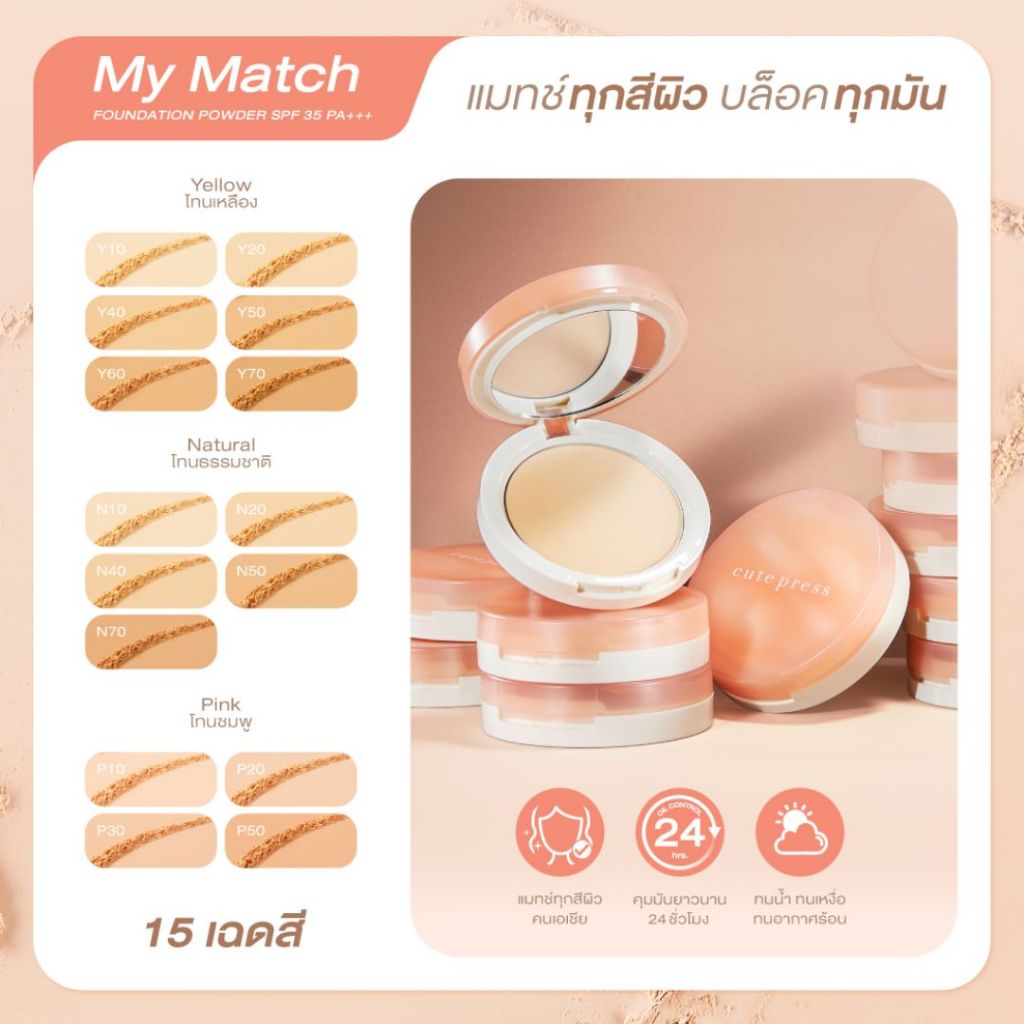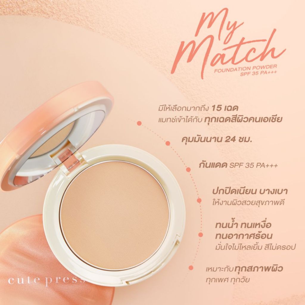 Cute Press My Match Foundation Powder Spf35 pa+++ คิวท์เพรส มาย แมช แป้งพัฟผสมรองพื้น 5 กรัม