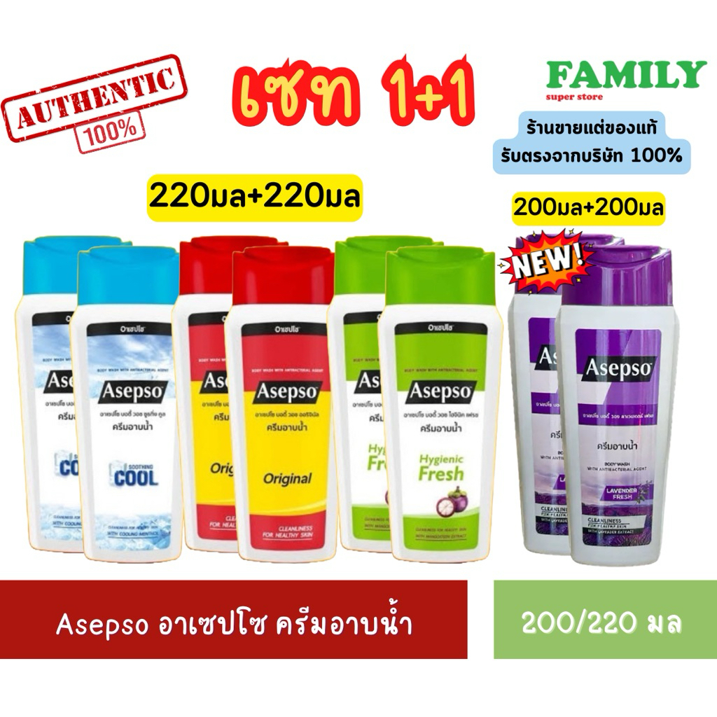 Asepso อาเซปโซ บอดี้ วอช ครีมอาบน้ำ ขนาด 200/220 มล. x 2ขวด [004]