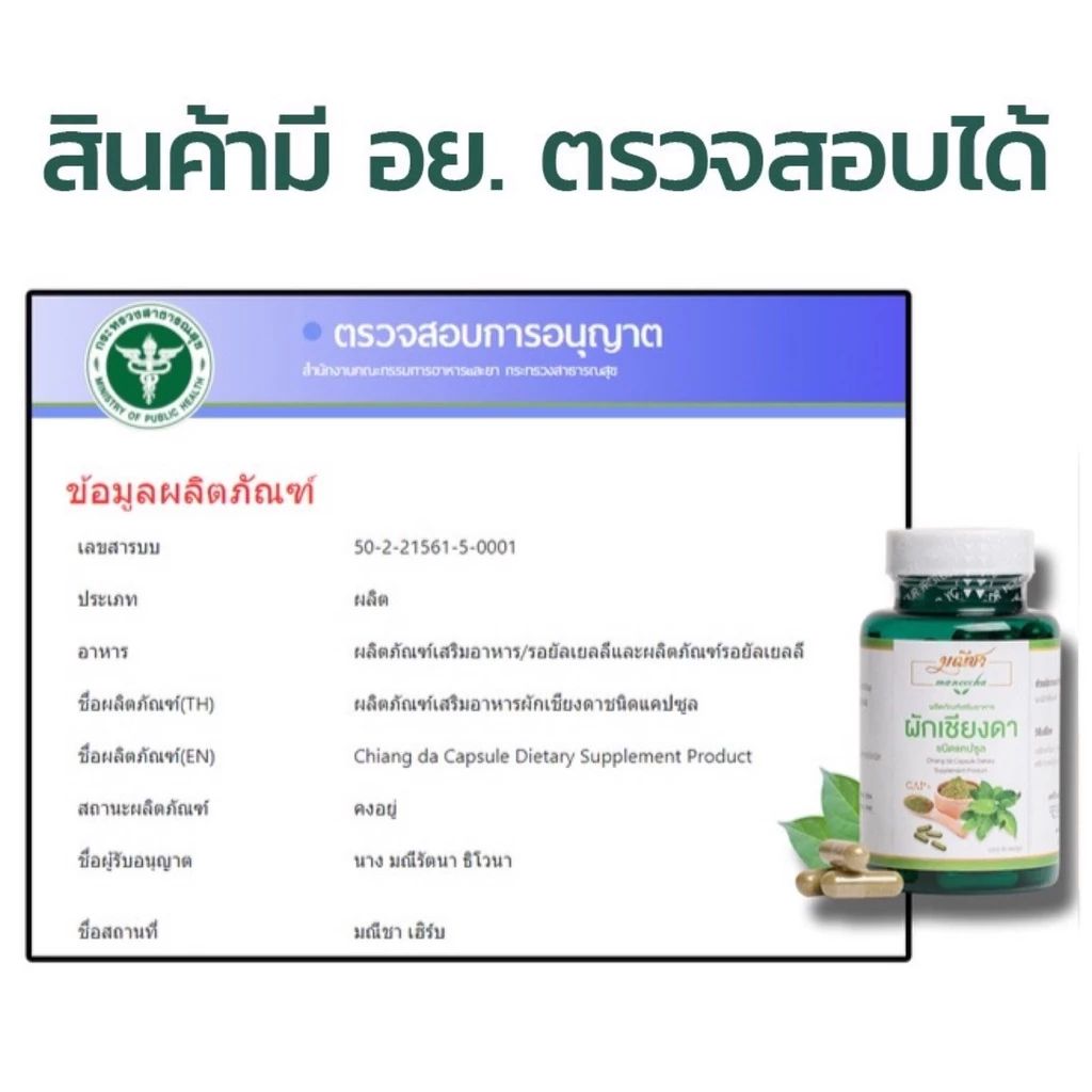 Maneecha มณีชา ผักเชียงดาชนิดแคปซูล 90 เม็ด