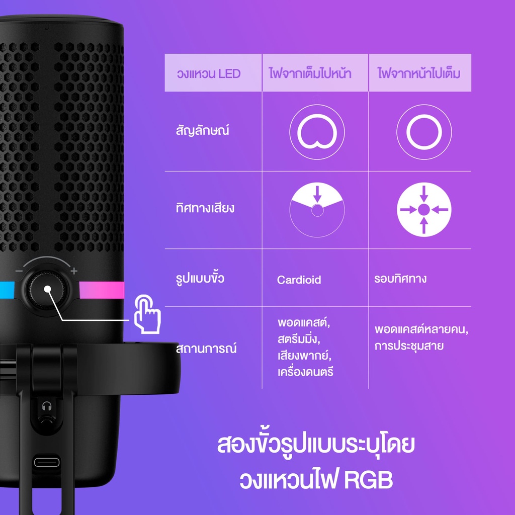 HyperX DuoCast – RGB USB Condenser Microphone ไมโครโฟน รองรับ PC PS4 (4P5E2AA)