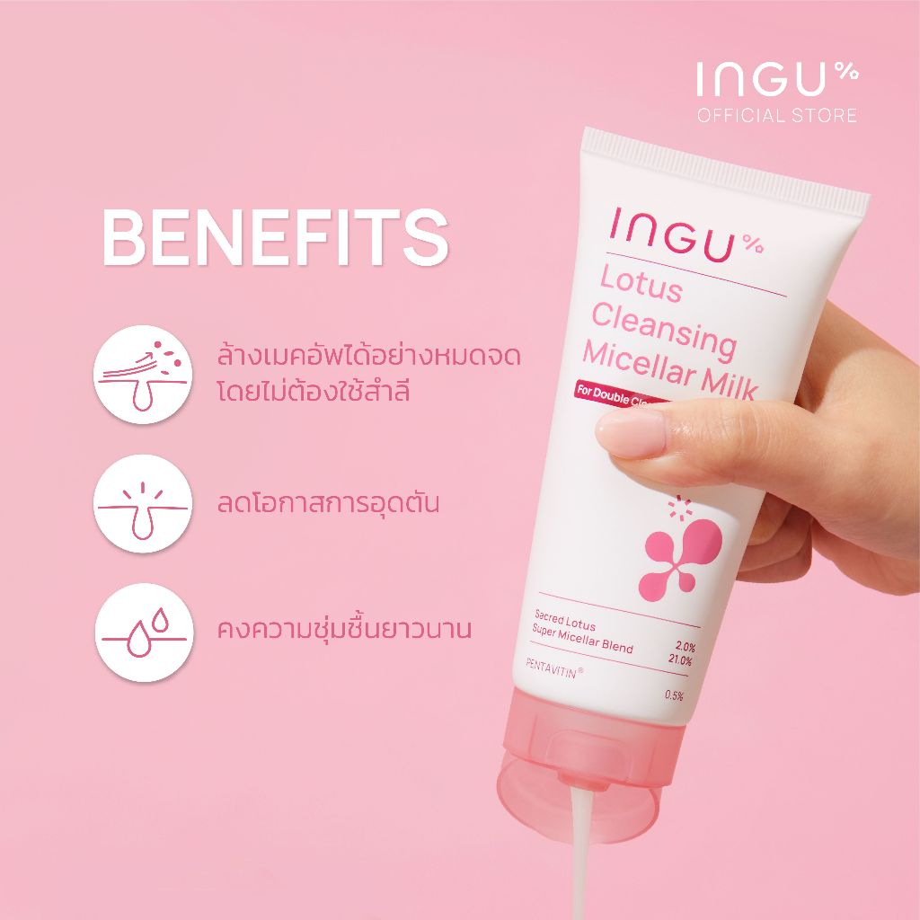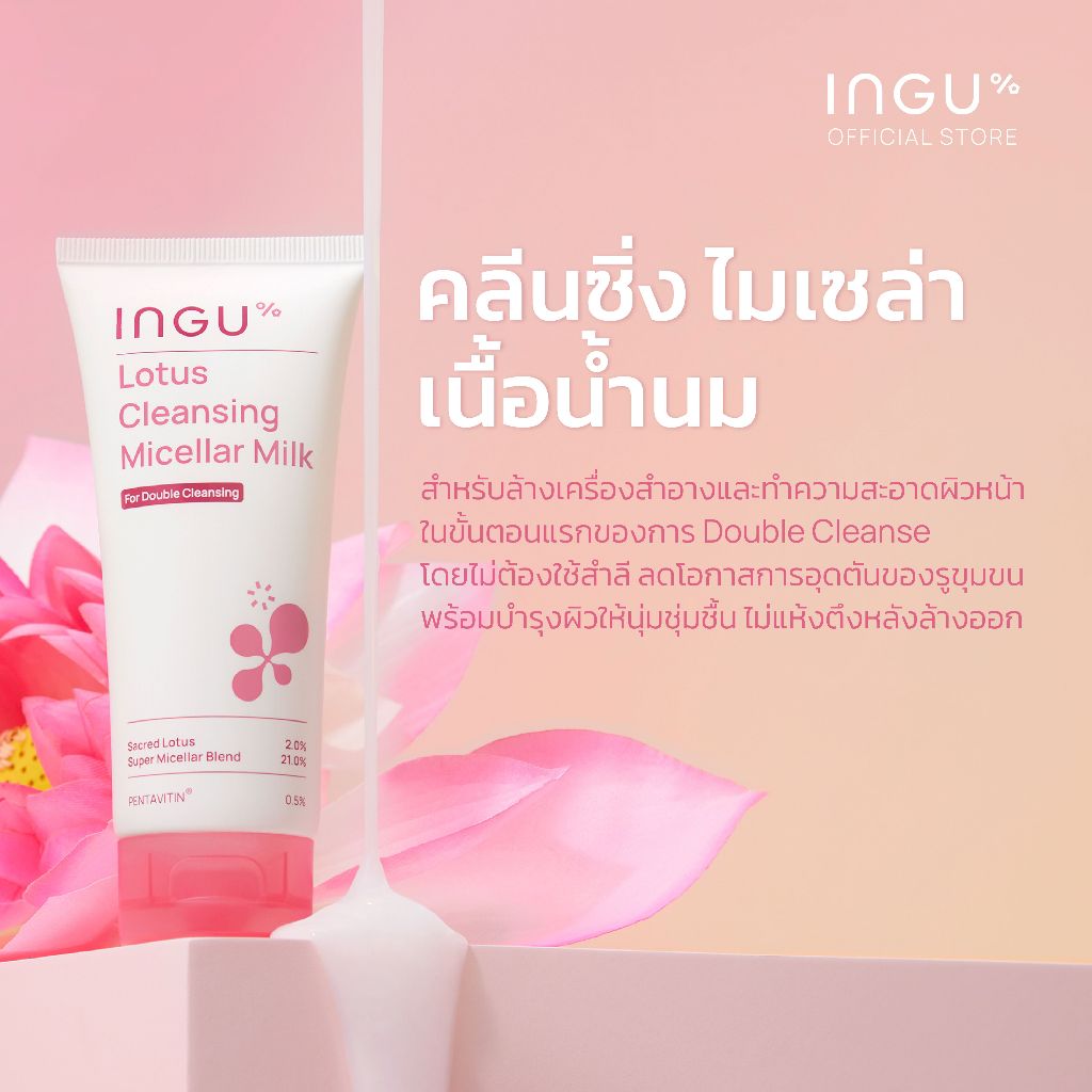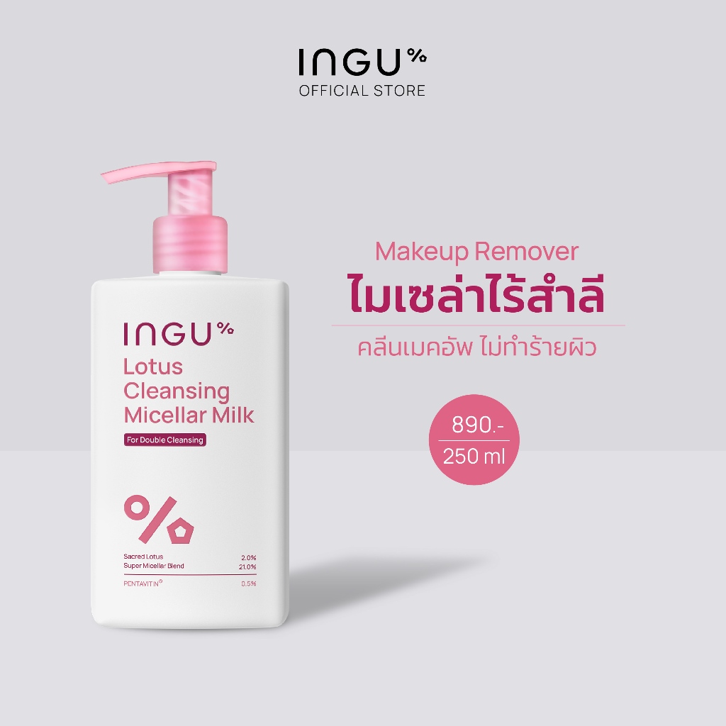 INGU Lotus Cleansing Micellar Milk คลีนซิ่งไมเซล่า เนื้อน้ำนม ไม่ต้องใช้สำลี สำหรับล้างเครื่องสำอางและทำความสะอาดผิวหน้า