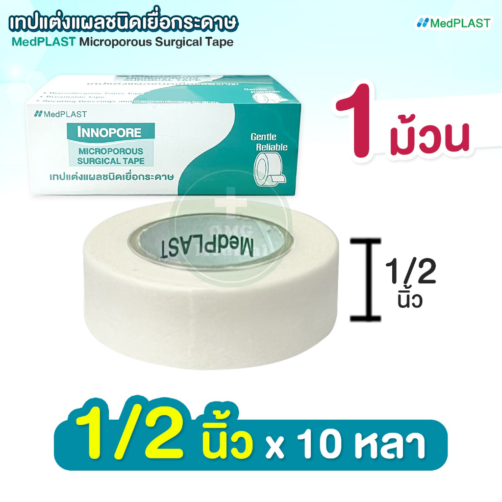 INNO PORE THAITAPE เทปแต่งแผล ชนิดเยื่อกระดาษ Microporous Surgical Tape ขนาด 1/2 นิ้ว, 1 นิ้ว x ยาว 10 หลา (1 ม้วน)
