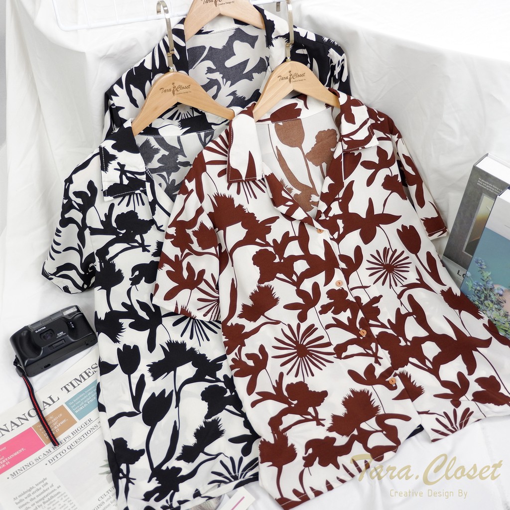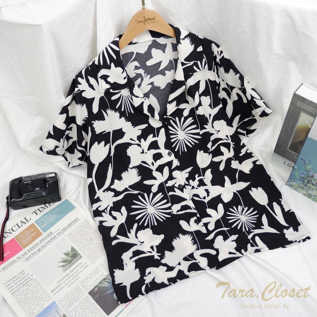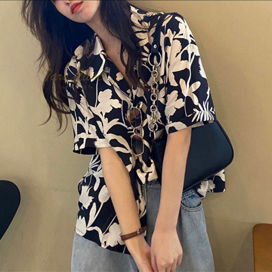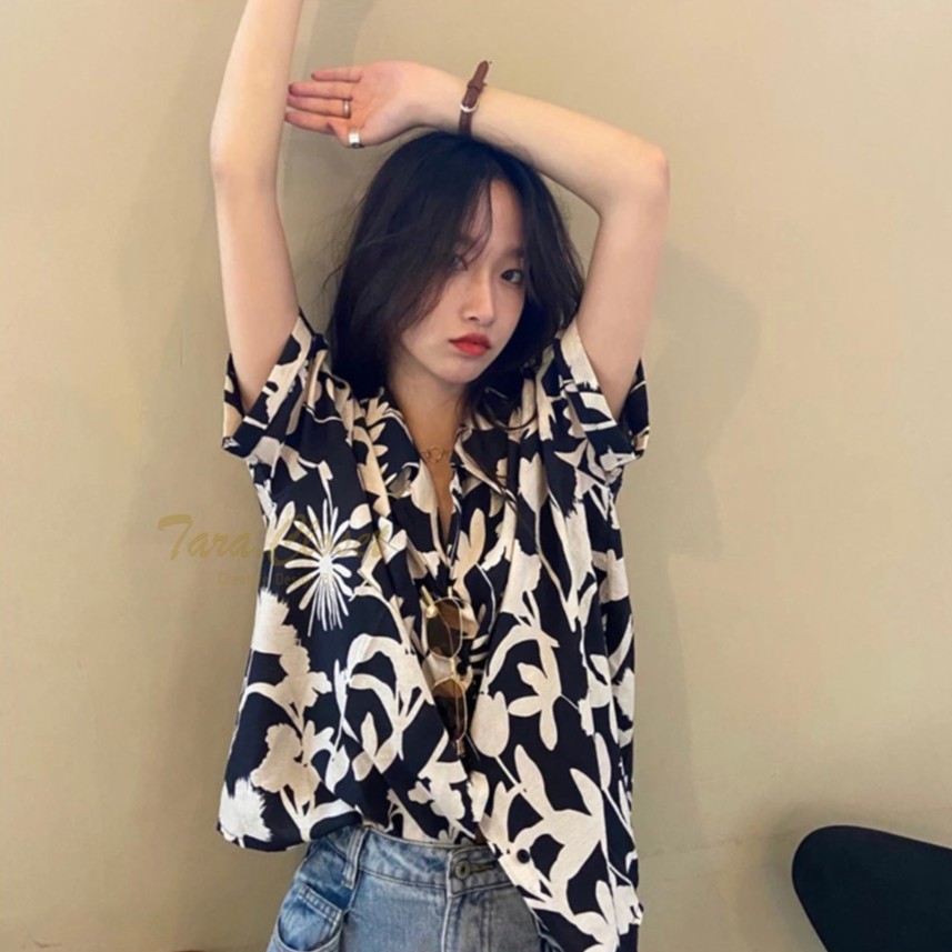 IT049 TARA Hawaii เสื้อเชิ้ตปกฮาวาย แขนสั้น ลายดอก กระดุมหน้า ลายกราฟฟิก สไตล์เกาหลี ผ้าไหมอิตาลี พิมพ์ลาย อย่างดี