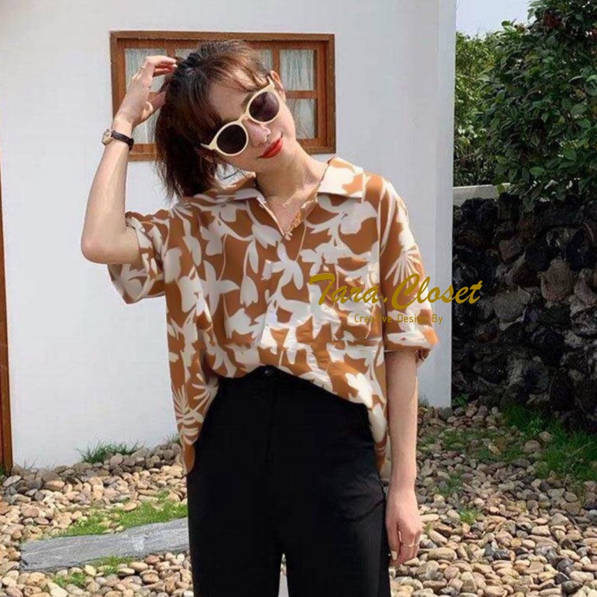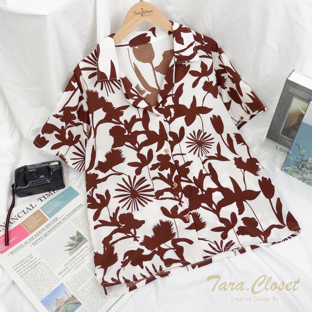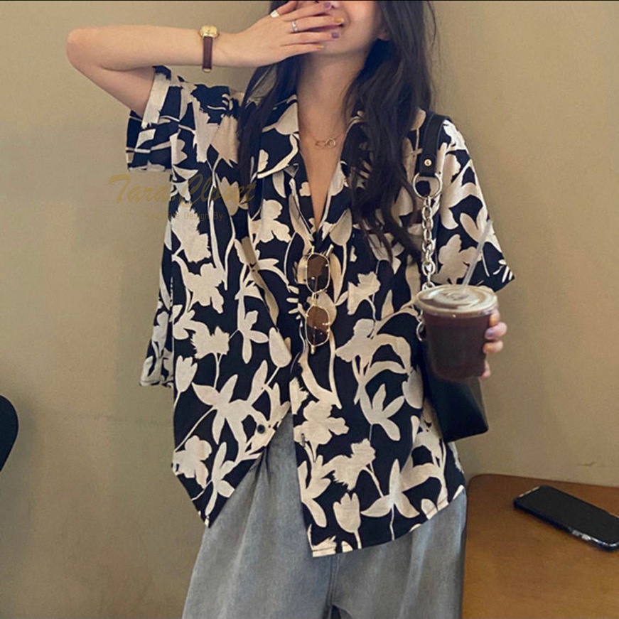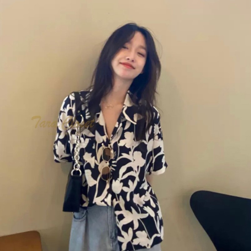 IT049 TARA Hawaii เสื้อเชิ้ตปกฮาวาย แขนสั้น ลายดอก กระดุมหน้า ลายกราฟฟิก สไตล์เกาหลี ผ้าไหมอิตาลี พิมพ์ลาย อย่างดี