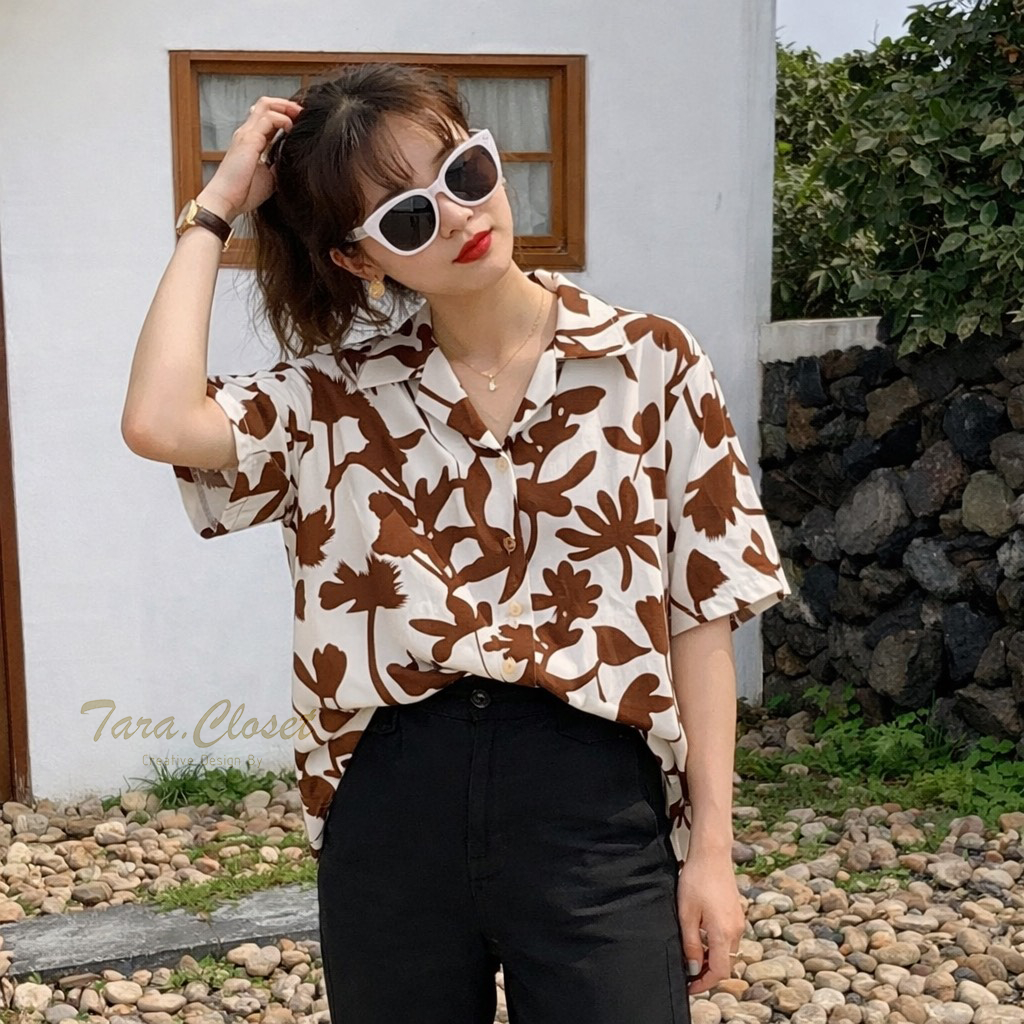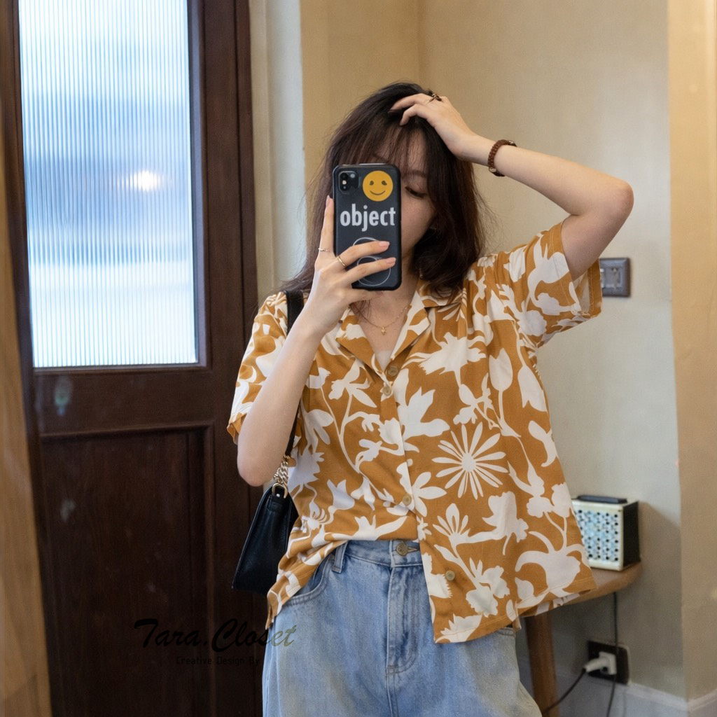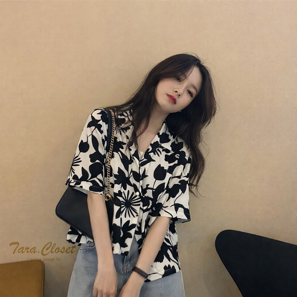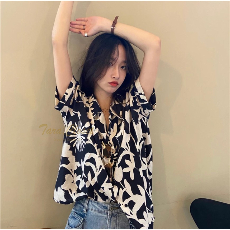 IT049 TARA Hawaii เสื้อเชิ้ตปกฮาวาย ลายดอก สงกรานต์ แขนสั้น กระดุมหน้า สไตล์เกาหลี เนื้อผ้าไหมอิตาลีพิมพ์ลายอย่างดี