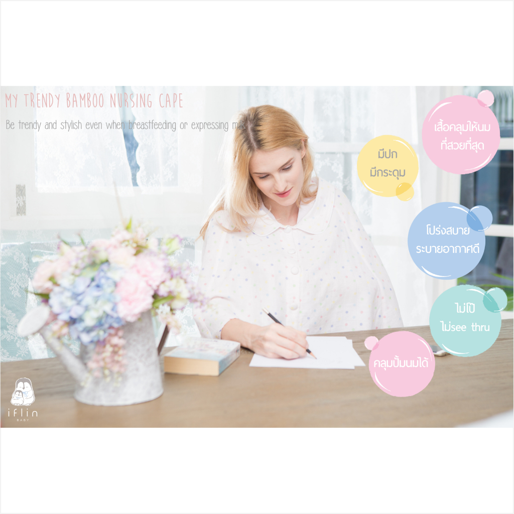 Iflin Baby - เสื้อคลุมให้นม (แบบคลุมทั้งตัว หน้าหลัง มีปก มีกระดุม) - Nursing Cape - ผ้าคลุมให้นม