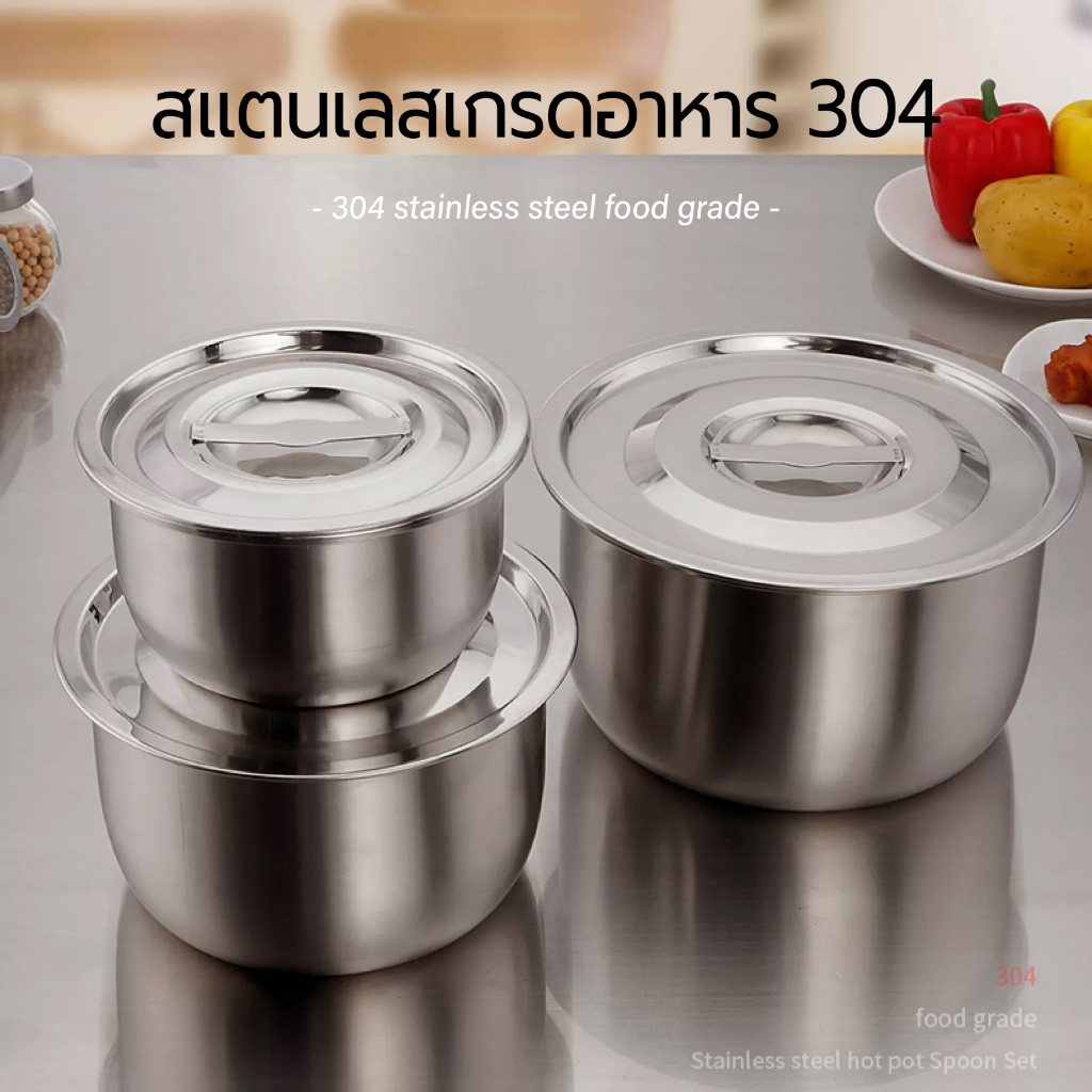 [ลูกค้าใหม่ 1 บาท] ชุดหม้อแขก 3ใบ 3ขนาด15/17/19CM พร้อมฝาปิด วัสดุสแตนเลส ใช้กับเตาแม่เหล็กไฟฟ้าได้