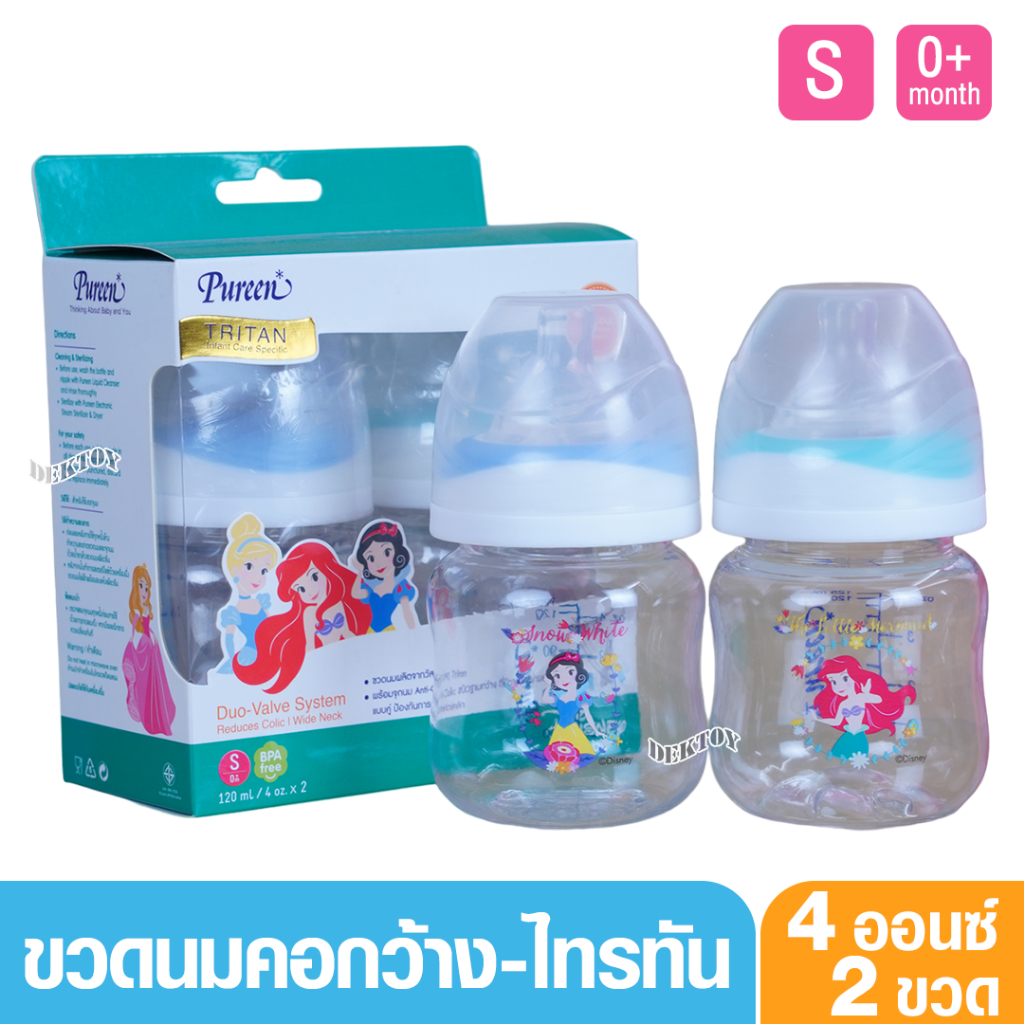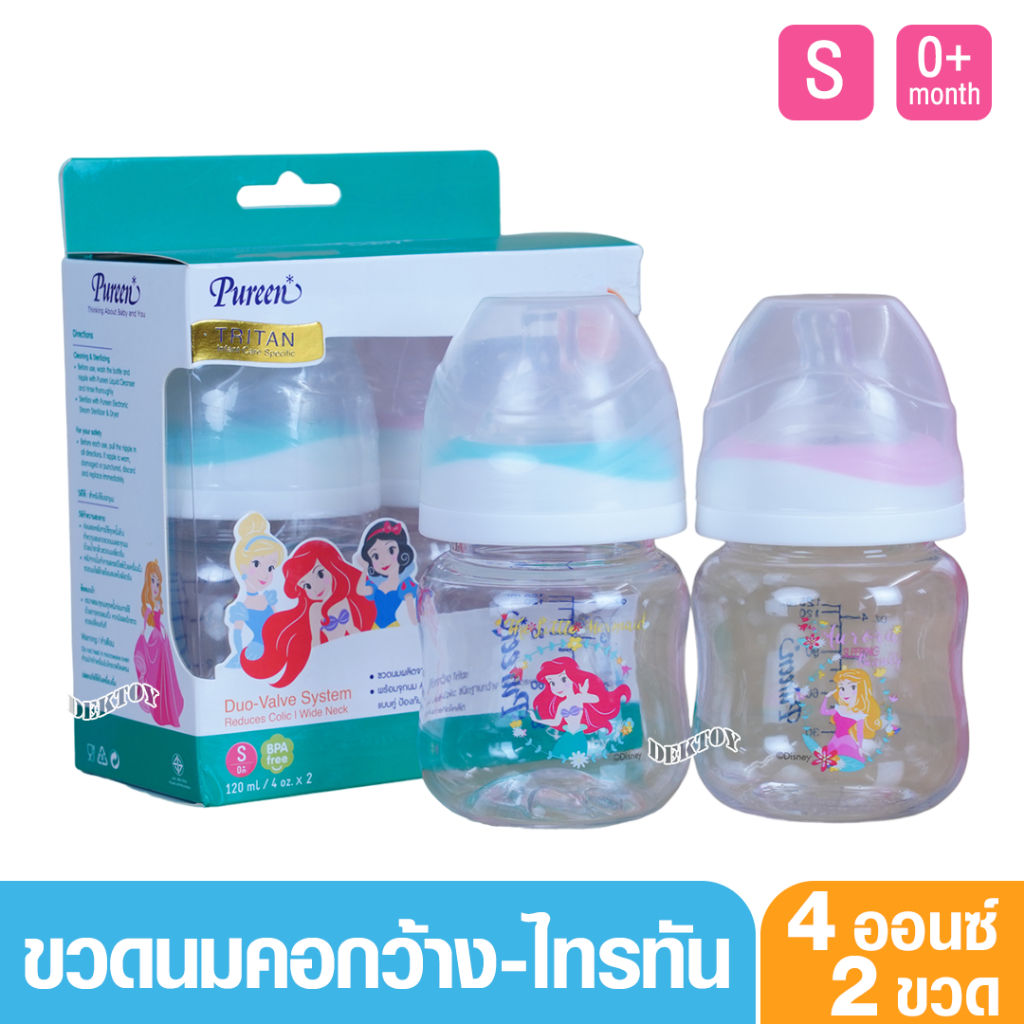 Pureen เพียวรีน ขวดนมเพียวรีนคอกว้าง Tritan ลายเจ้าหญิง 4 ออนซ์ แพ็ค2ขวด