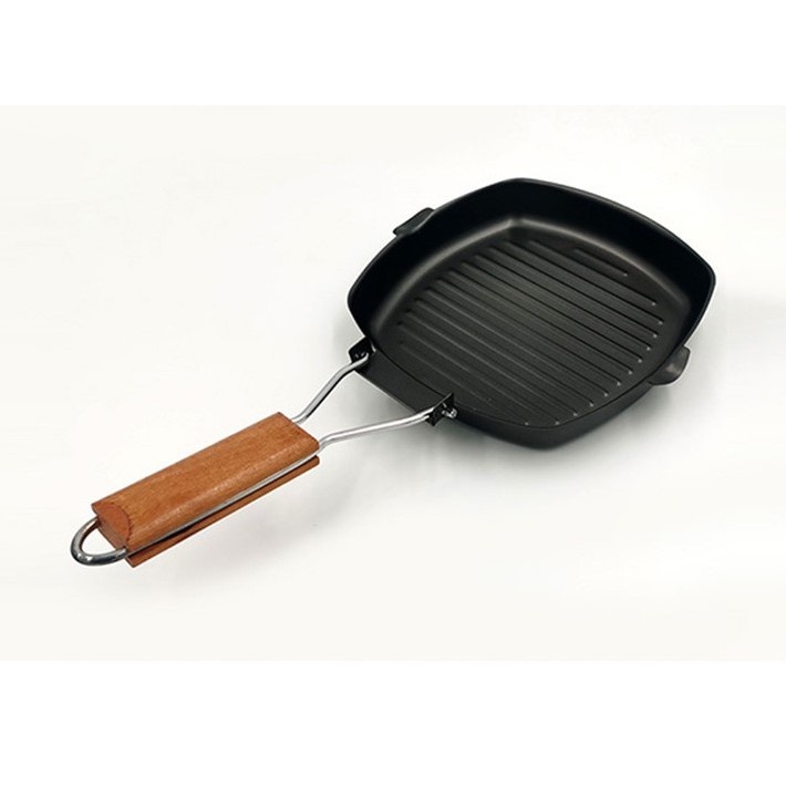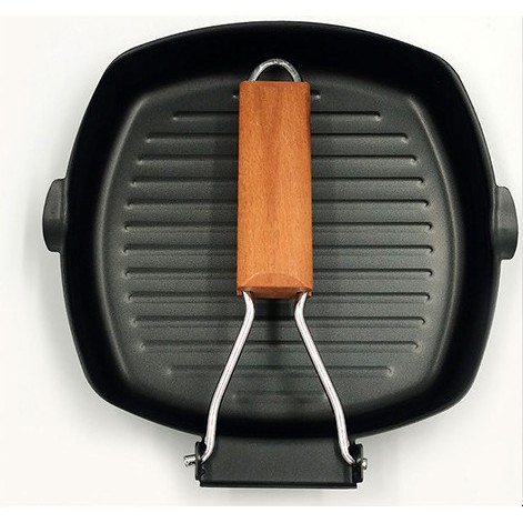 B กะทะย่างเนื้อ กะทะ (มีด้ามจับพับได้) กะทะย่างสเต็ก